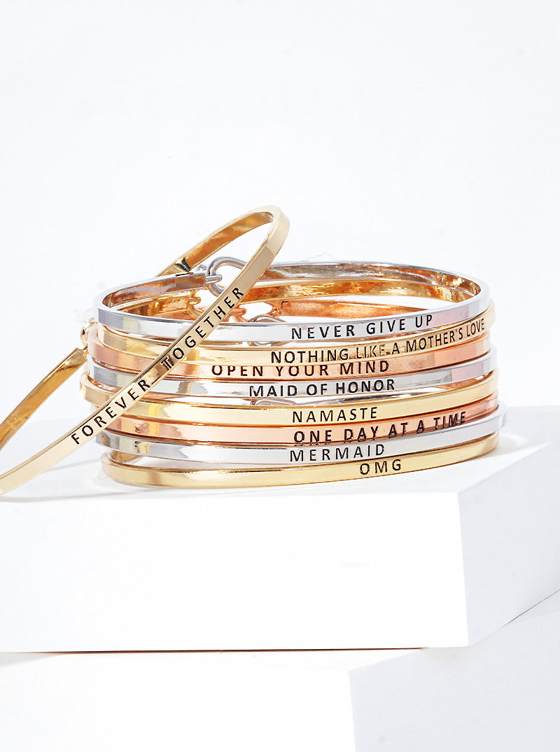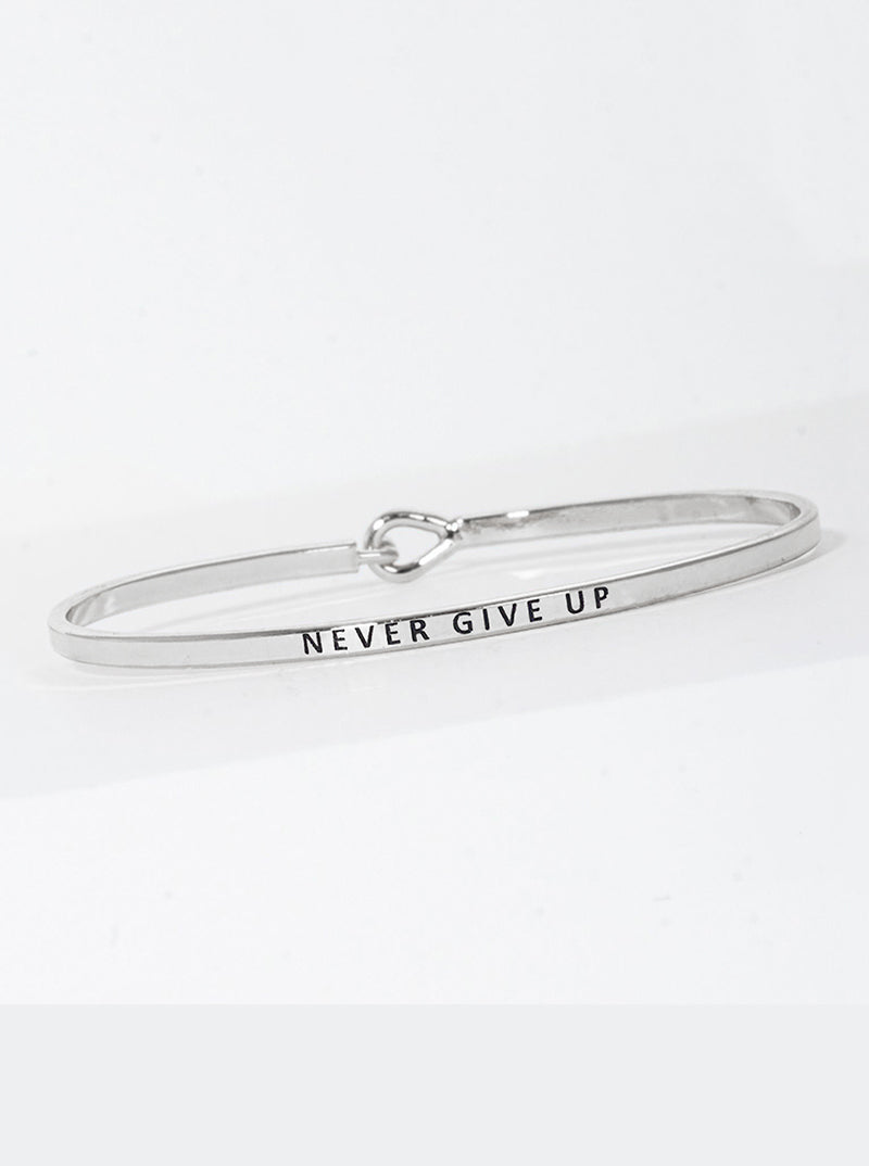 Never Give Up Engraved Inspirational Bangle Bracelet