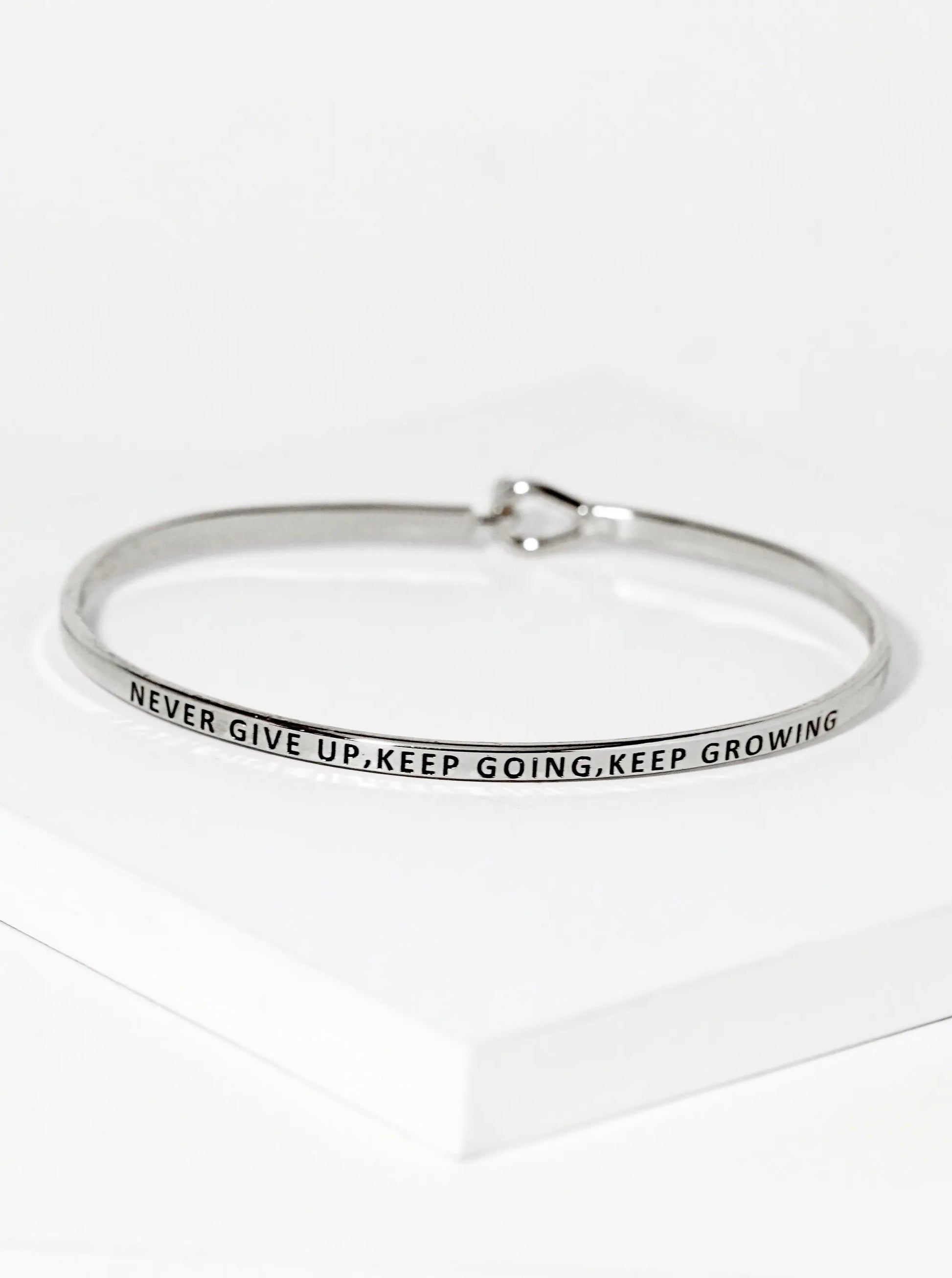 Never Give Up Keep Going Keep Growing Engraved Inspirational Bangle Bracelet
