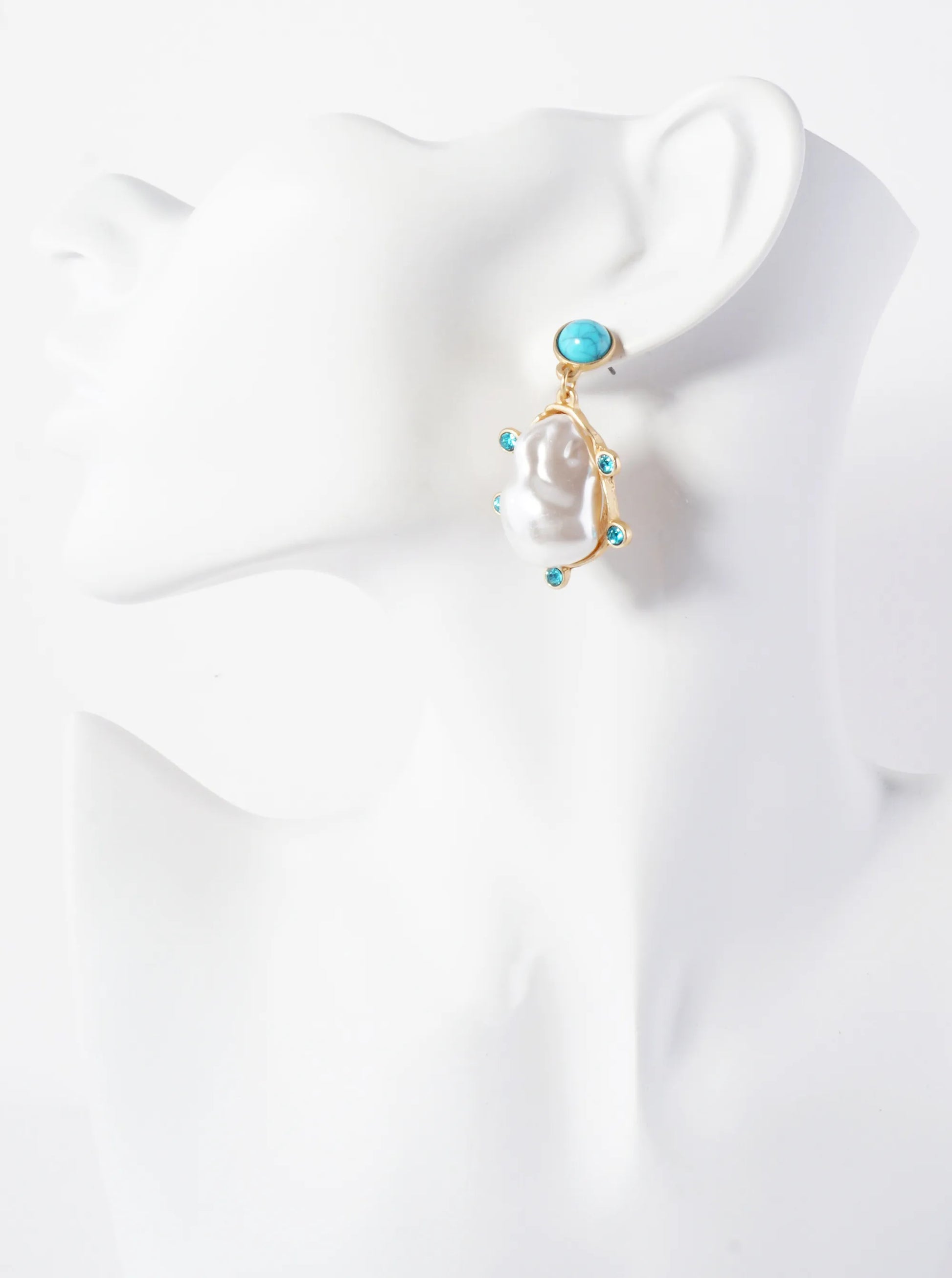 These Earrings Feature An Organic-shaped Pearl Drop Paired With Semi-precious Natural Stones, Creating A Beautiful, Earthy Elegance. The Subtle Curve Of The Pearls And The Rich Textures Of The Stones Give These Earrings A Unique, Nature-inspired Look. Finished With A Secure Post Closure, They Add A Touch Of Sophistication To Any Outfit While Offering A Lightweight, Comfortable Wear.