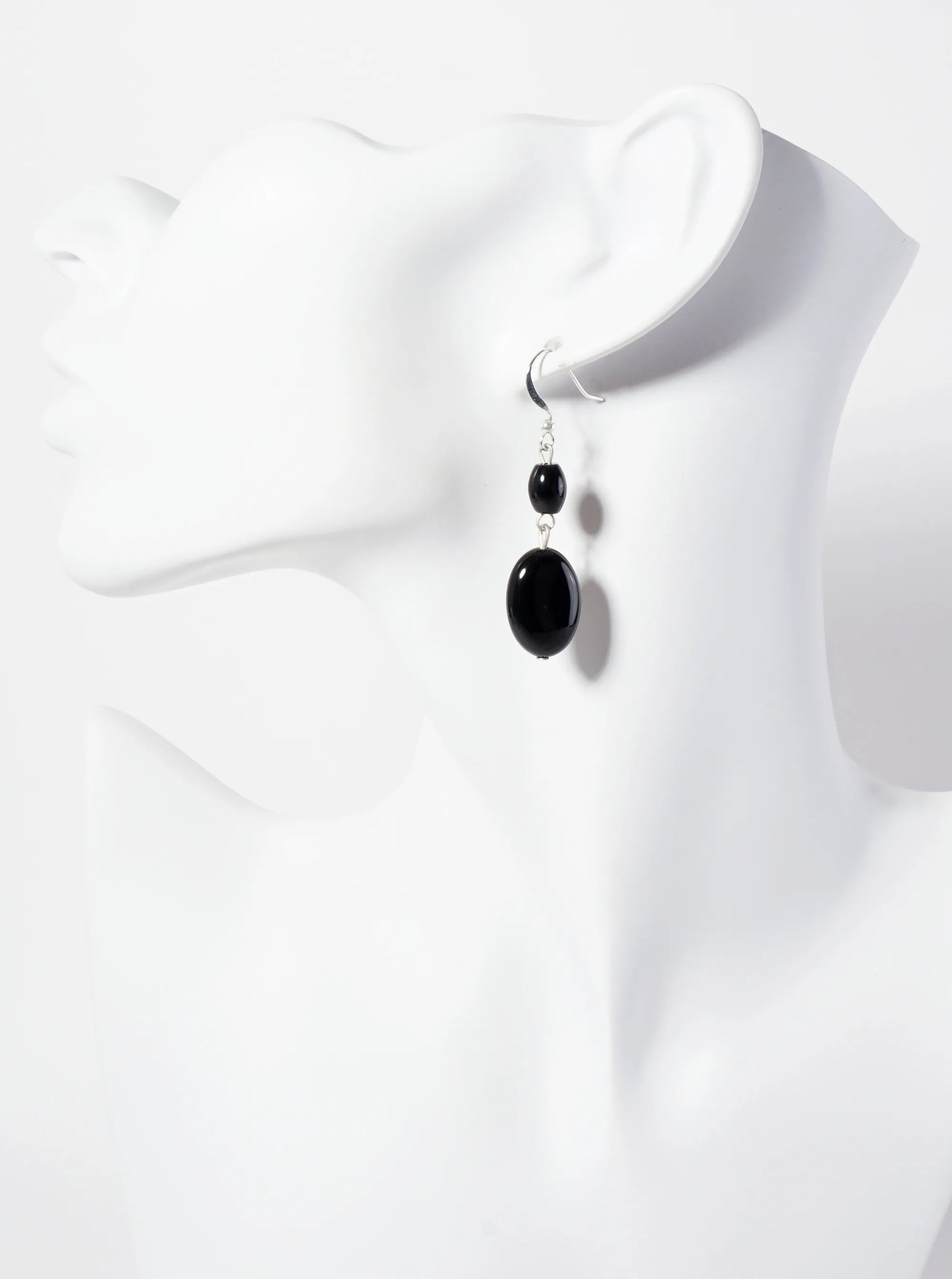 The Earrings Feature A Bold And Elegant Design, Showcasing The Deep, Rich Black Hue Of Onyx. Each Earring Features An Oval-shaped Onyx Stone, Known For Its Smooth Surface And Striking, Glossy Finish. The Dark, Dramatic Color Of The Onyx Creates A Sophisticated And Timeless Look, Making These Earrings Perfect For Both Day And Evening Wear. The Stones Are Set In A Simple, Refined Frame That Allows The Natural Beauty Of The Onyx To Take Center Stage. Hanging Delicately From A Post Or Hook, These Drop Earrings Offer A Touch Of Elegance And Luxury, Ideal For Those Who Appreciate The Understated Yet Powerful Beauty Of Semi-precious Stones.