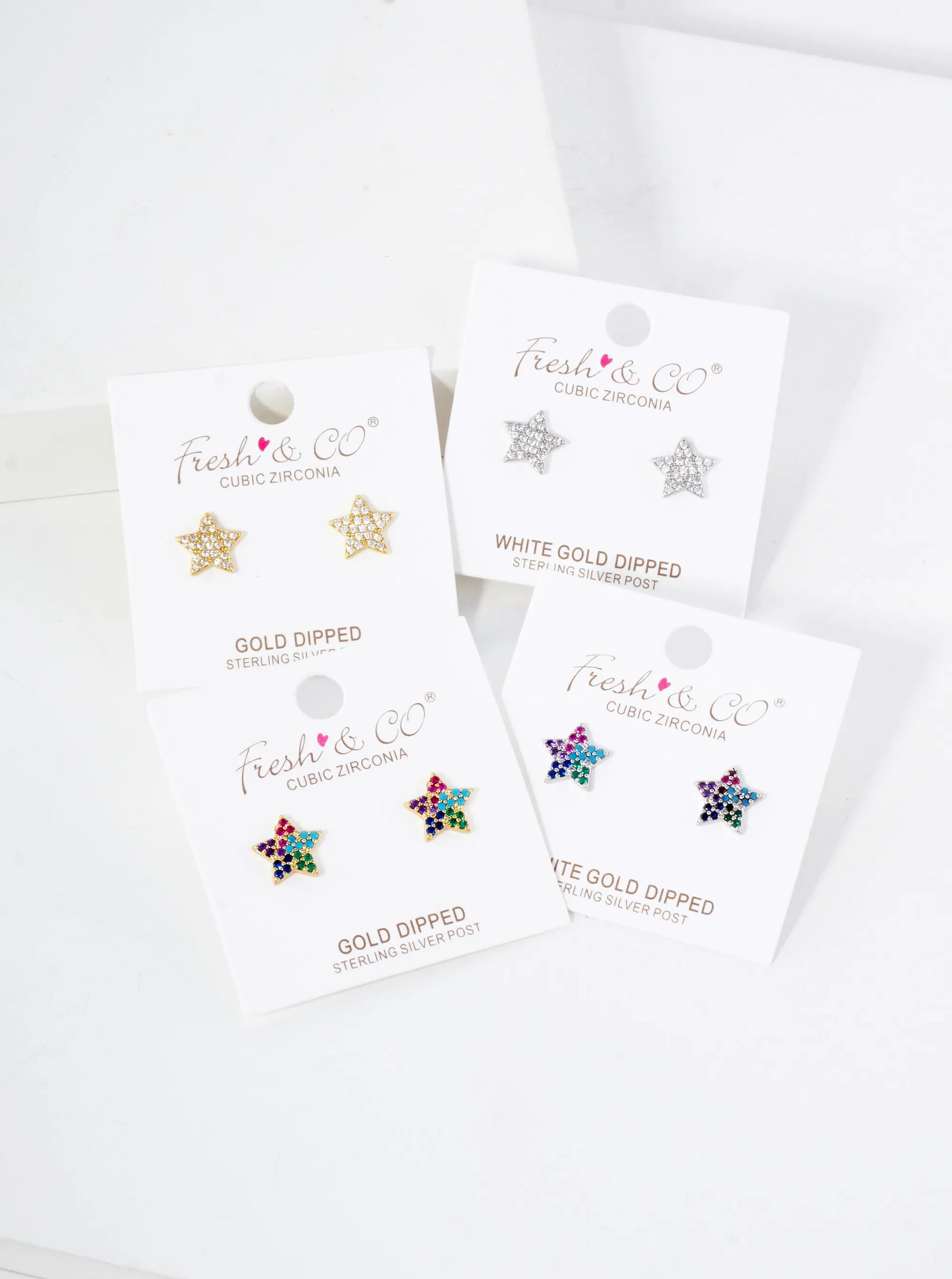 These Earrings Are A Striking Blend Of Elegance And Sparkle. Crafted With Precision, Each Earring Features A Star Shape That Is Intricately Adorned With Pave-set Cubic Zirconia Stones, Creating A Dazzling, All-over Sparkle. The Earrings Are Beautifully Dipped In 18K Gold, Giving Them A Warm, Radiant Finish. With A 10mm Diameter, They Offer A Perfect Balance Of Size And Elegance, Making Them A Versatile Addition To Any Jewelry Collection.
