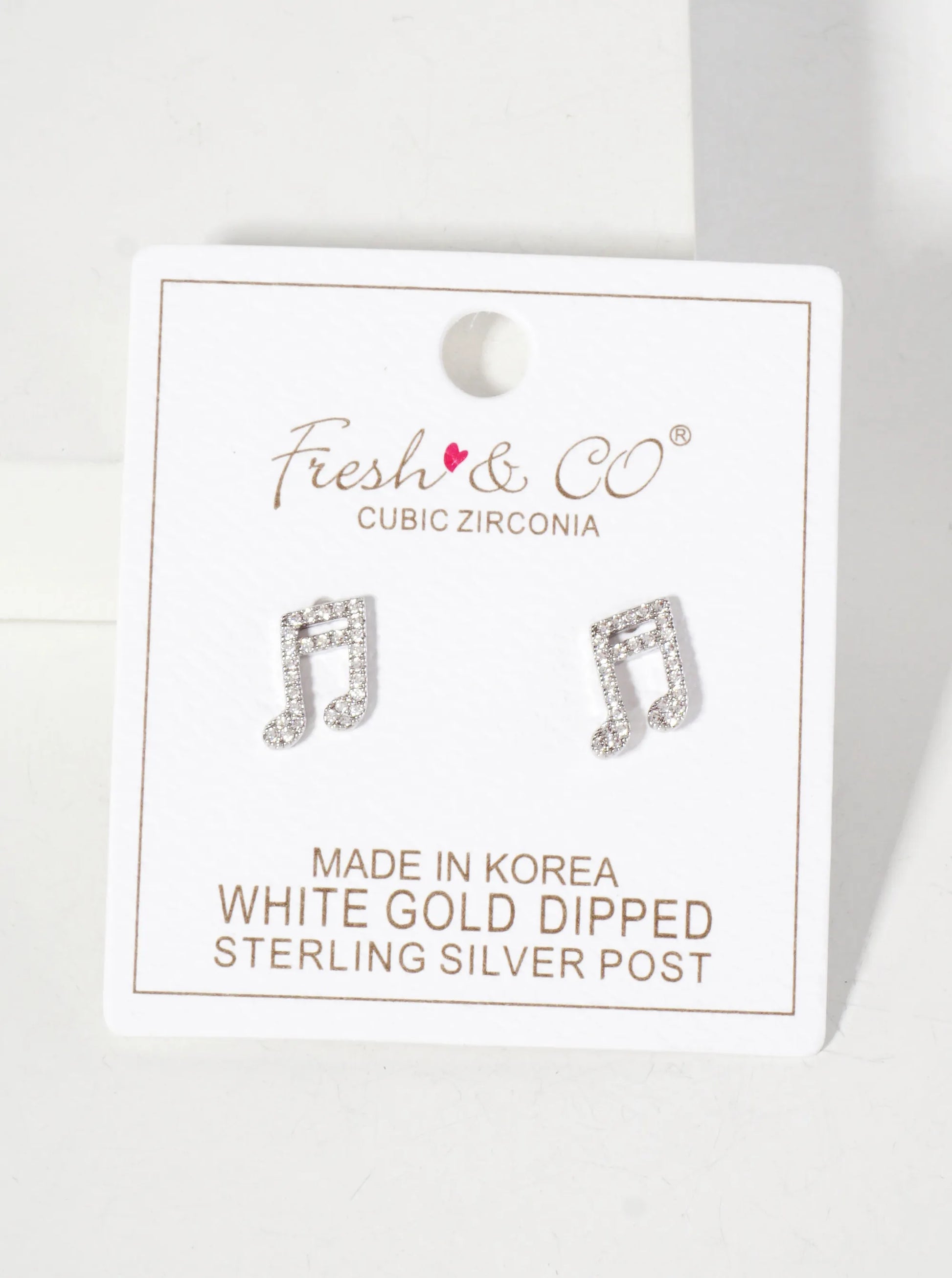 These Earrings Blend Artistic Expression With Sparkling Luxury. Crafted From Brass And Dipped In 18K Gold, The Earrings Exude A Warm, Sophisticated Glow That Enhances Their Delicate Design. The Musical-note Shape Adds A Playful Yet Elegant Touch, Making These Earrings A Unique Accessory For Music Lovers And Those Who Appreciate Creative, Artistic Jewelry.