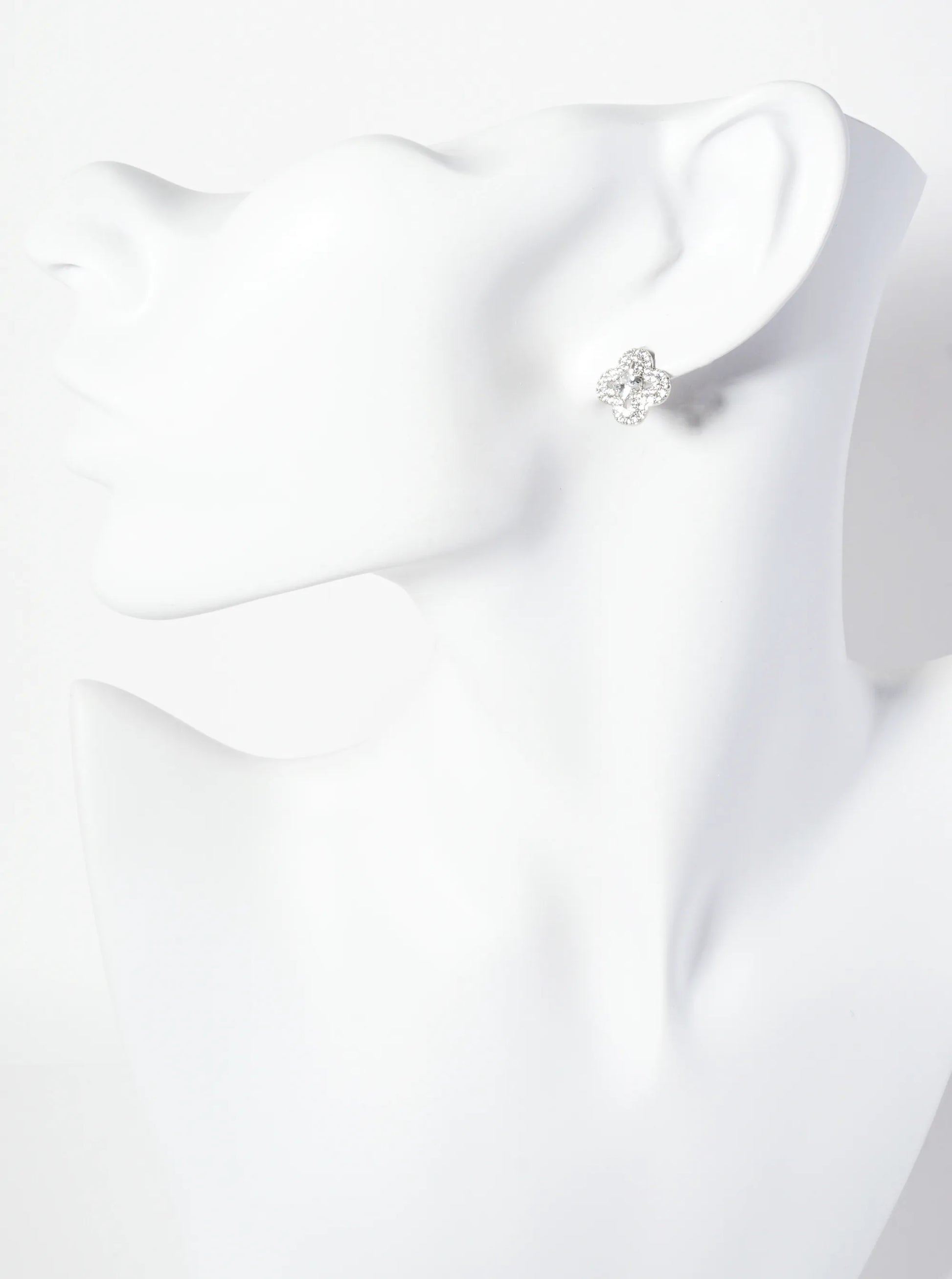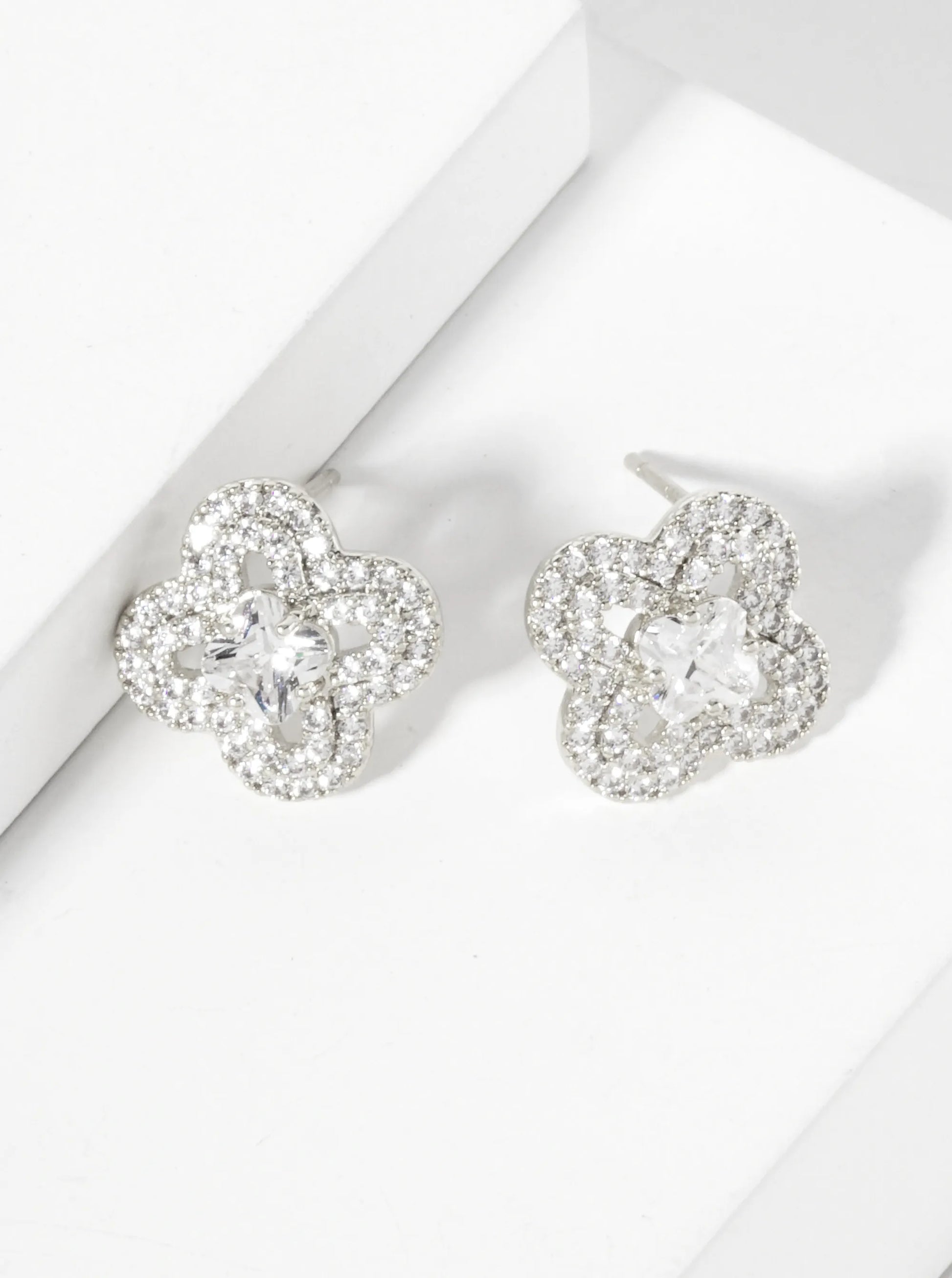 The Earrings Are A Stunning Blend Of Elegance And Sparkle. These Earrings Feature A 12mm Quatrefoil Design, A Beautiful Four-leaf Shape That Exudes Both Charm And Sophistication. The Pave-set Cubic Zirconia Stones Are Carefully Arranged Across The Quatrefoil, Adding A Brilliant, Radiant Shine As They Catch The Light From Every Angle.