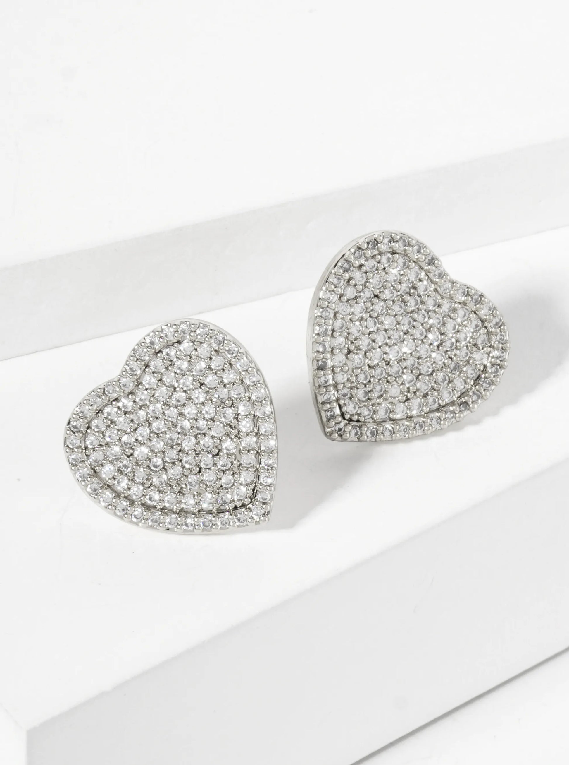 These Earrings Combine Romantic Elegance With Brilliant Sparkle. The Earrings Feature A Heart Shape That Is Fully Adorned With Pave-set Cubic Zirconia Stones, Creating A Continuous Shimmer Of Light With Every Movement. The CZ Stones Are Meticulously Arranged, Offering A Refined, Dazzling Effect That Enhances The Overall Design.