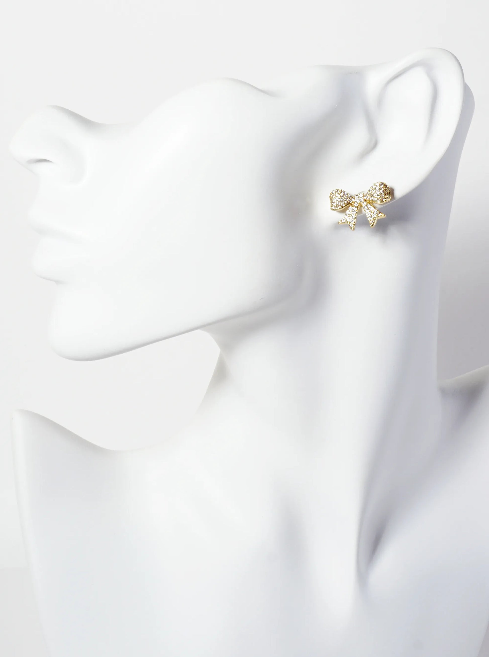 Pave-Set Cubic-Zirconia 17mm Bow 18K-Gold-Dipped Stud Earrings