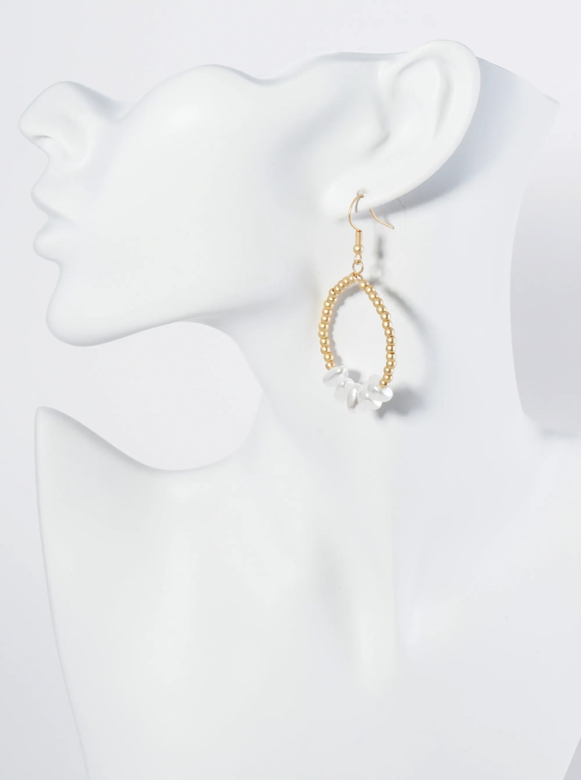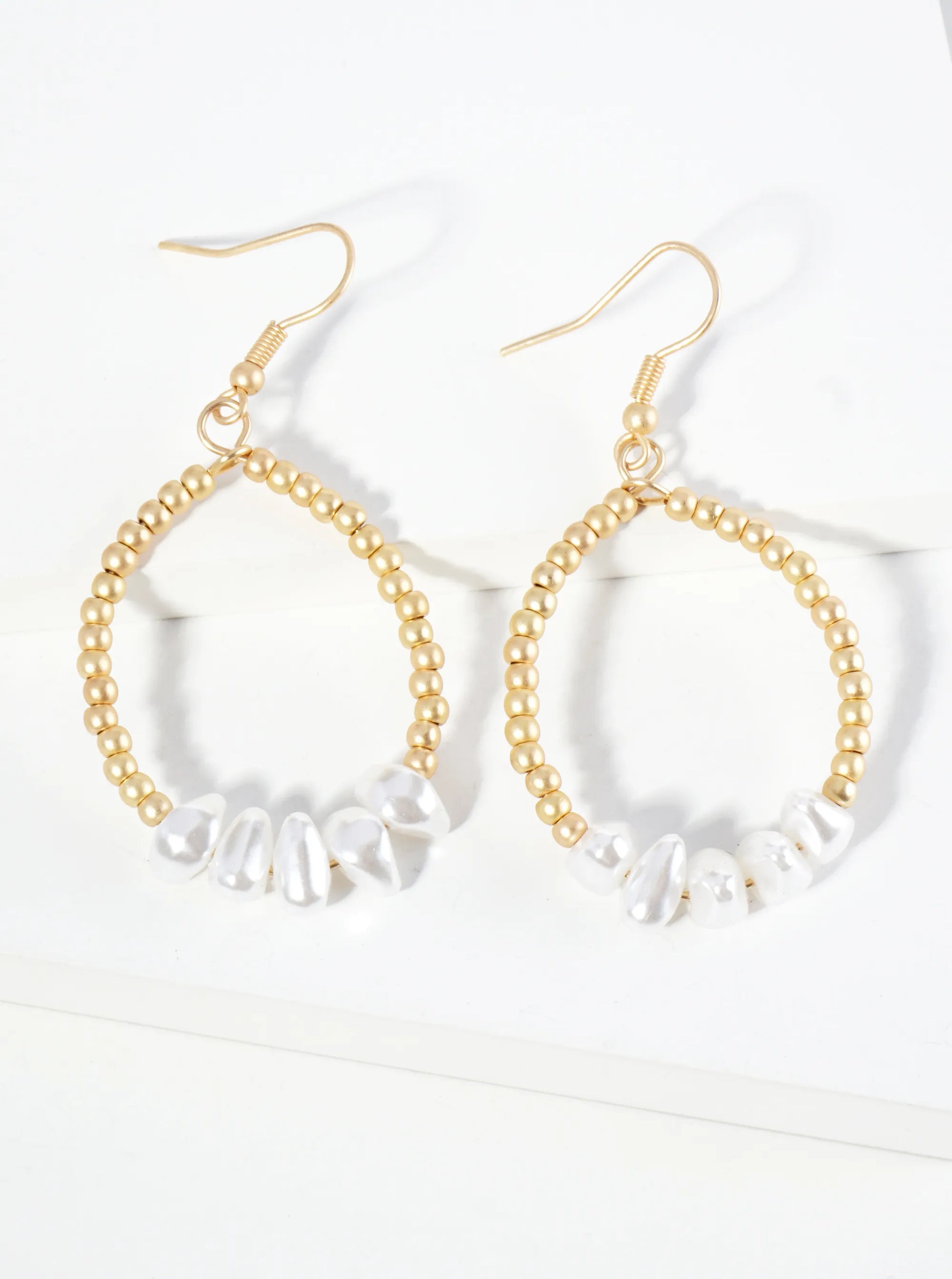 Pearl Bead Accent Metallic Beaded Wire Circle Dangle Drop Earrings