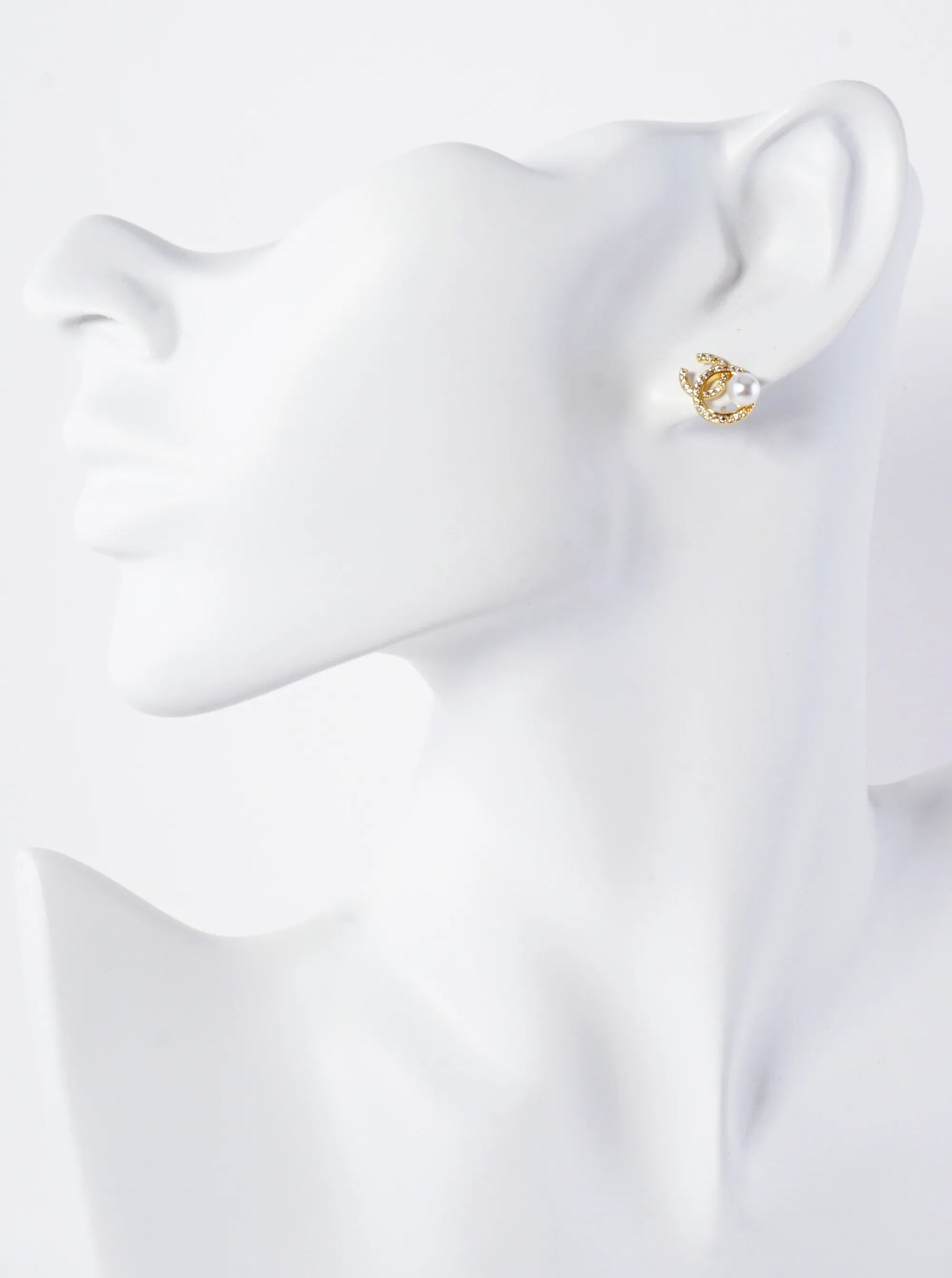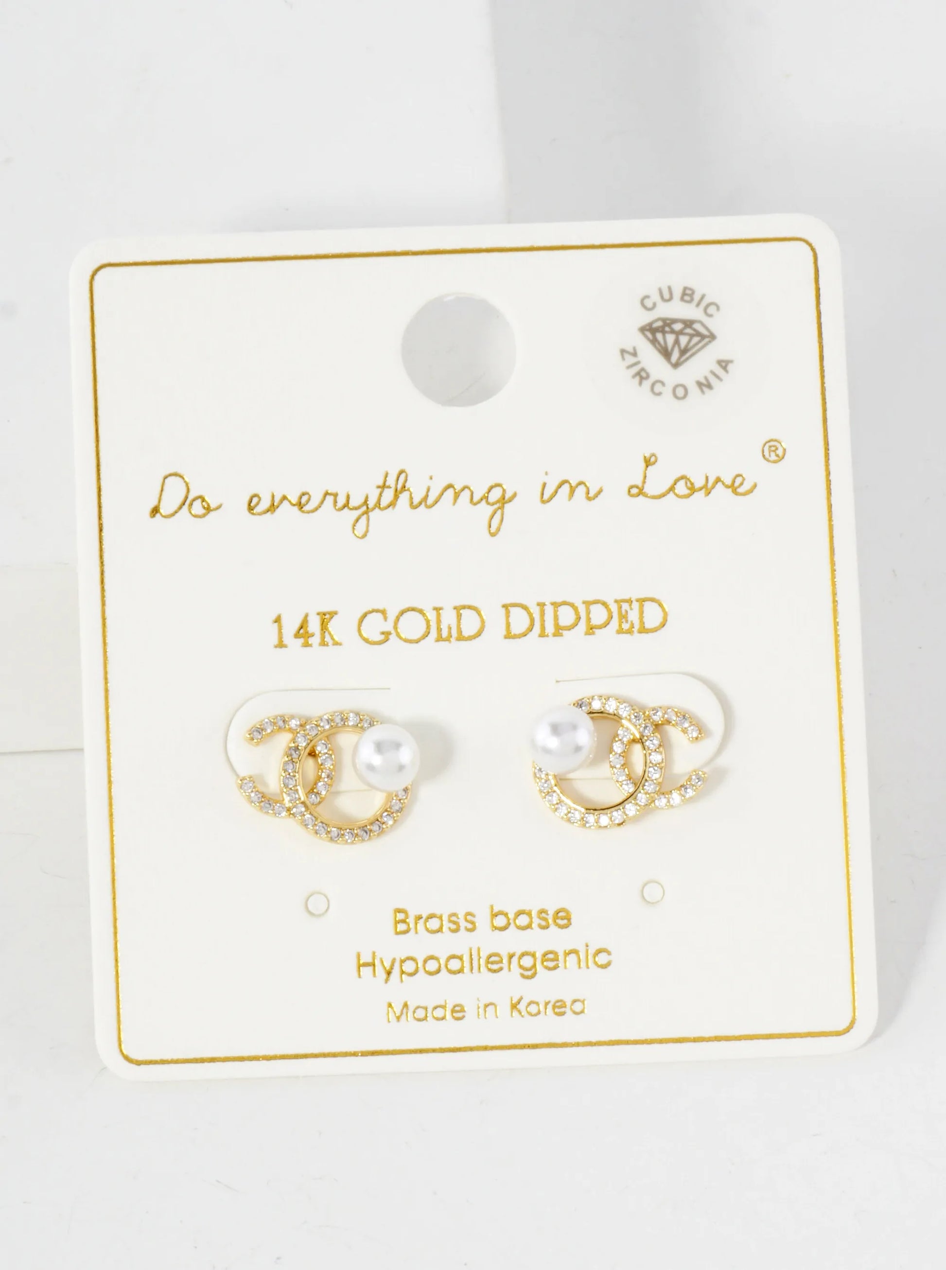 These Sophisticated Stud Earrings Feature Overlapping "O" And "C" Shapes, Adorned With Delicate Pearl-bead Accents For A Touch Of Elegance. Crafted From Durable Brass And Dipped In Luxurious 14K Gold, The Design Offers A Refined, Polished Finish. The Subtle Interplay Between The Geometric Shapes And Pearl Details Creates A Unique, Modern Look That’s Perfect For Adding A Chic, Timeless Touch To Any Outfit.