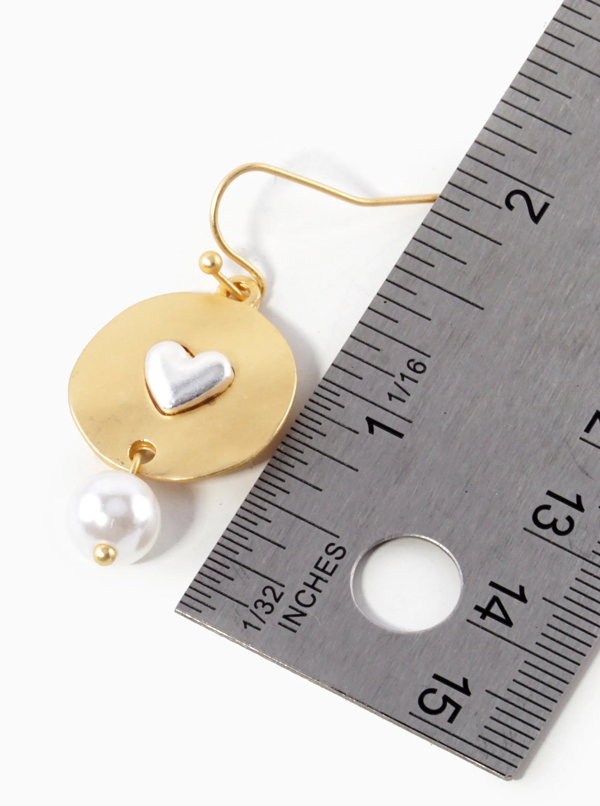 Pearl Bead Drop Heart Disc Dangle Earrings