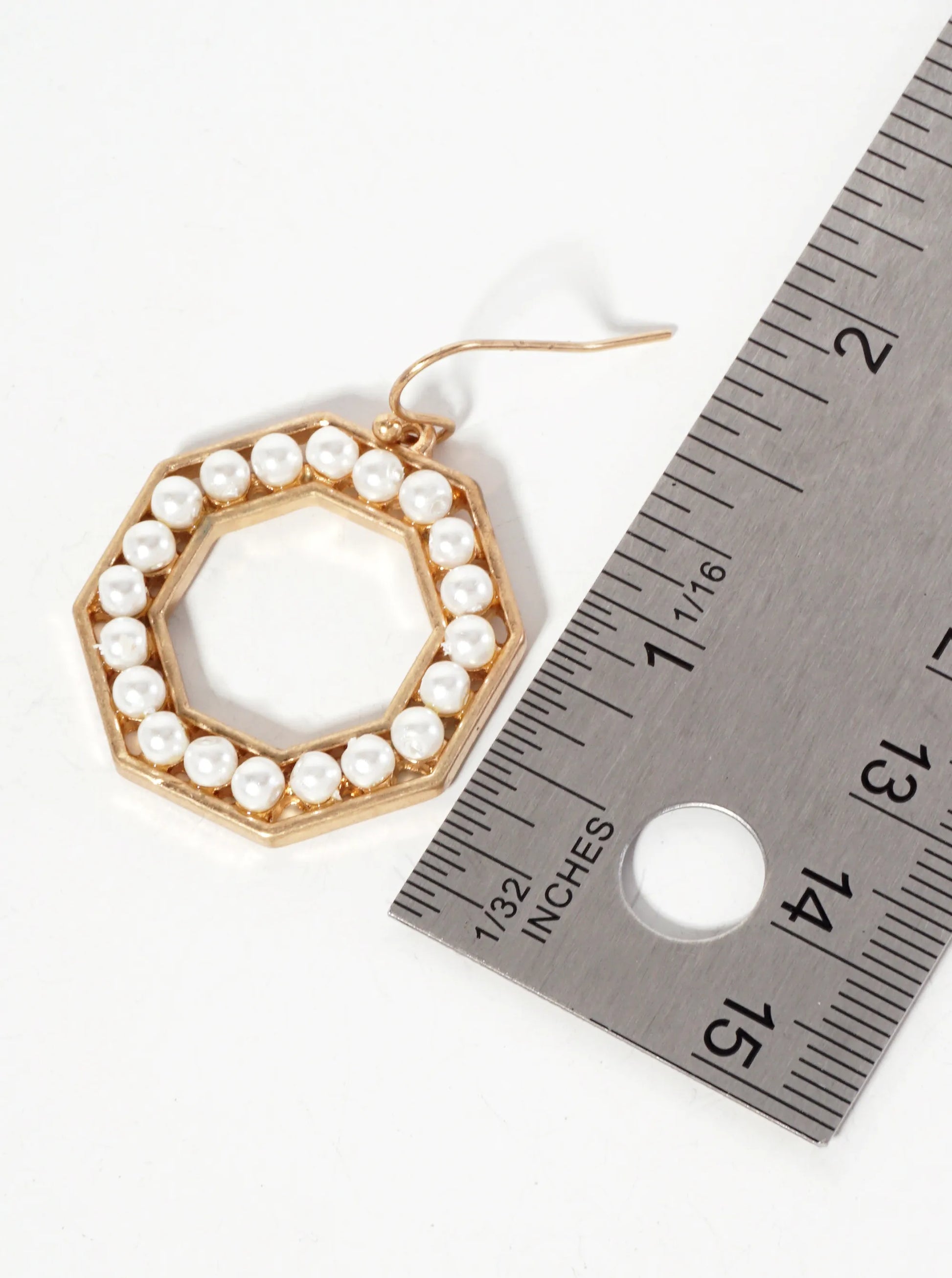 Pearl-Beaded Octagon-Shaped Dangle Earrings