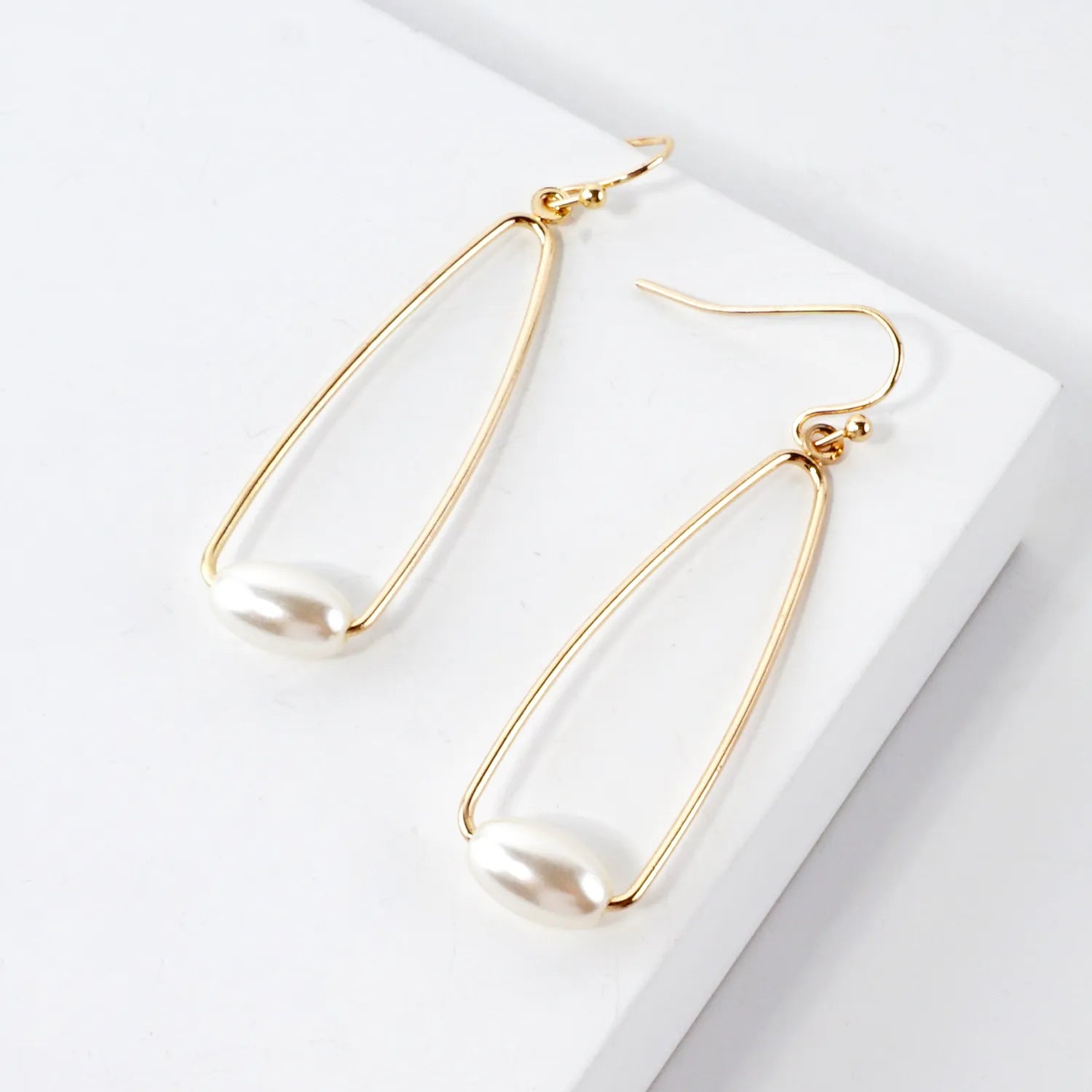 Pearl On Wire Teardrop Dangle Earrings