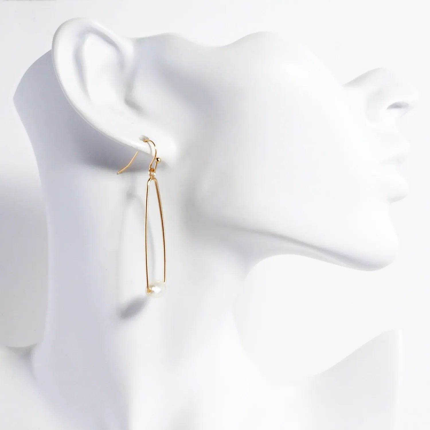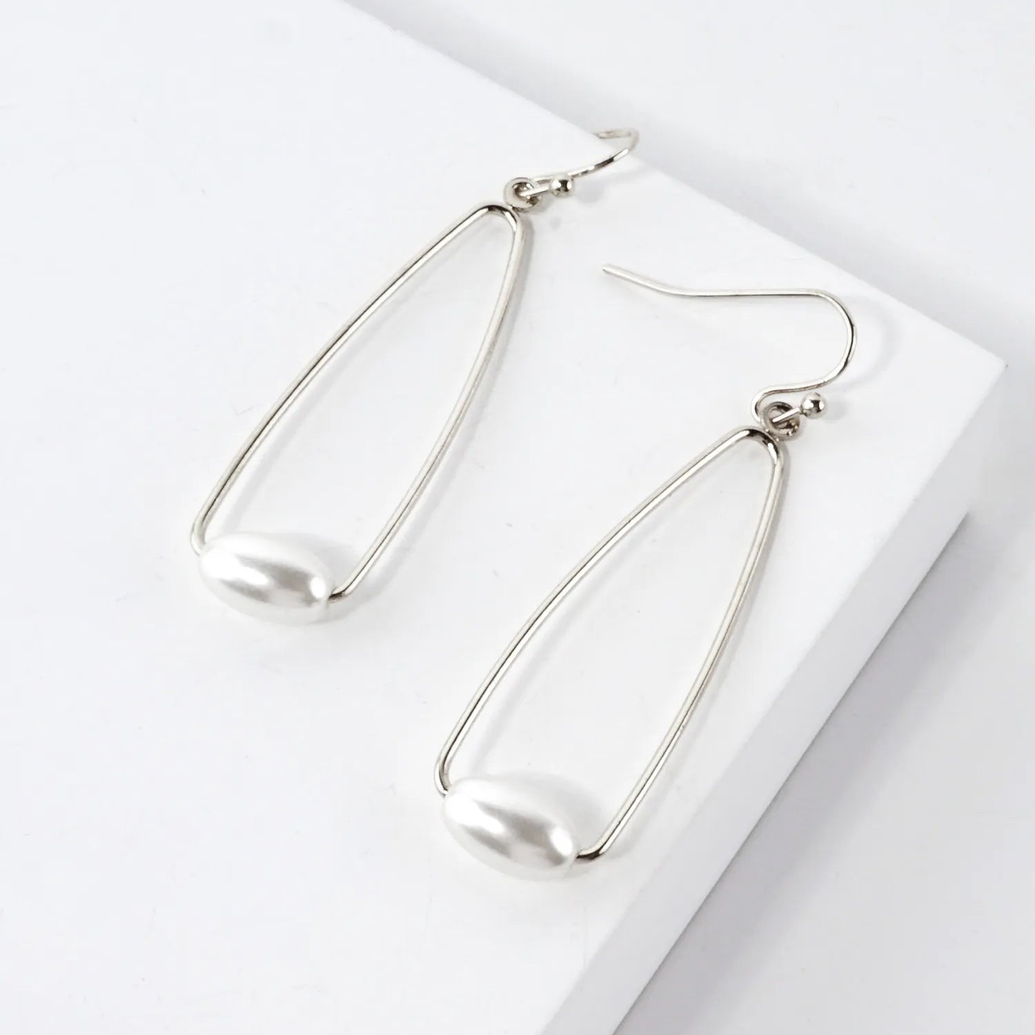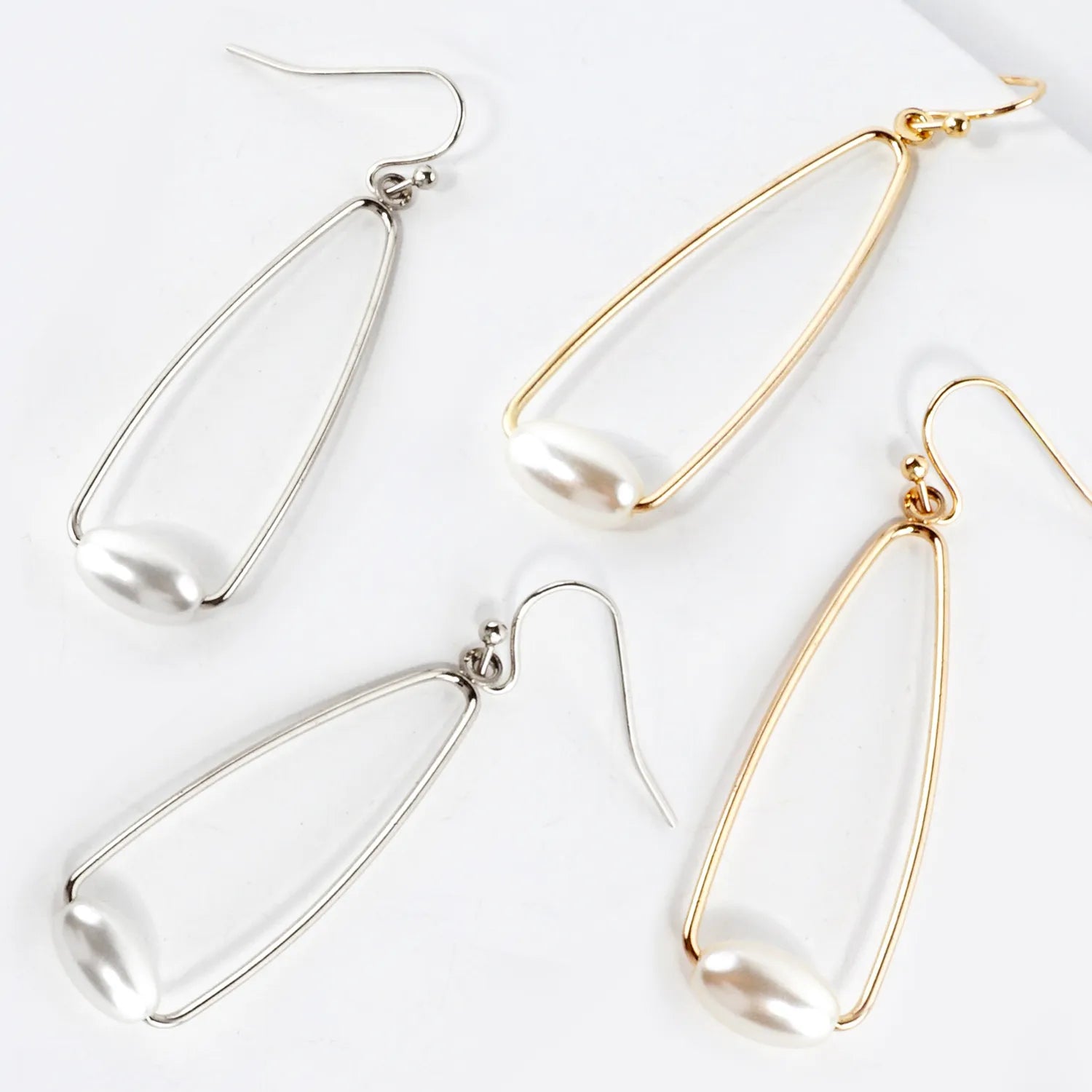 Elevate Your Collection With The Timeless Elegance Of These Earrings. Featuring A Luminous Pearl Delicately Suspended On A Sleek Wire Teardrop Frame, These Earrings Bring Effortless Sophistication And Graceful Movement To Any Look.