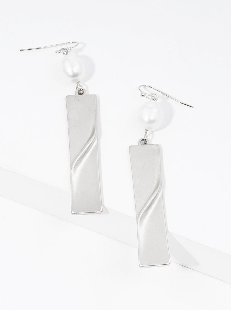 Pearl With Textured Metal Bar Drop Dangle Earrings