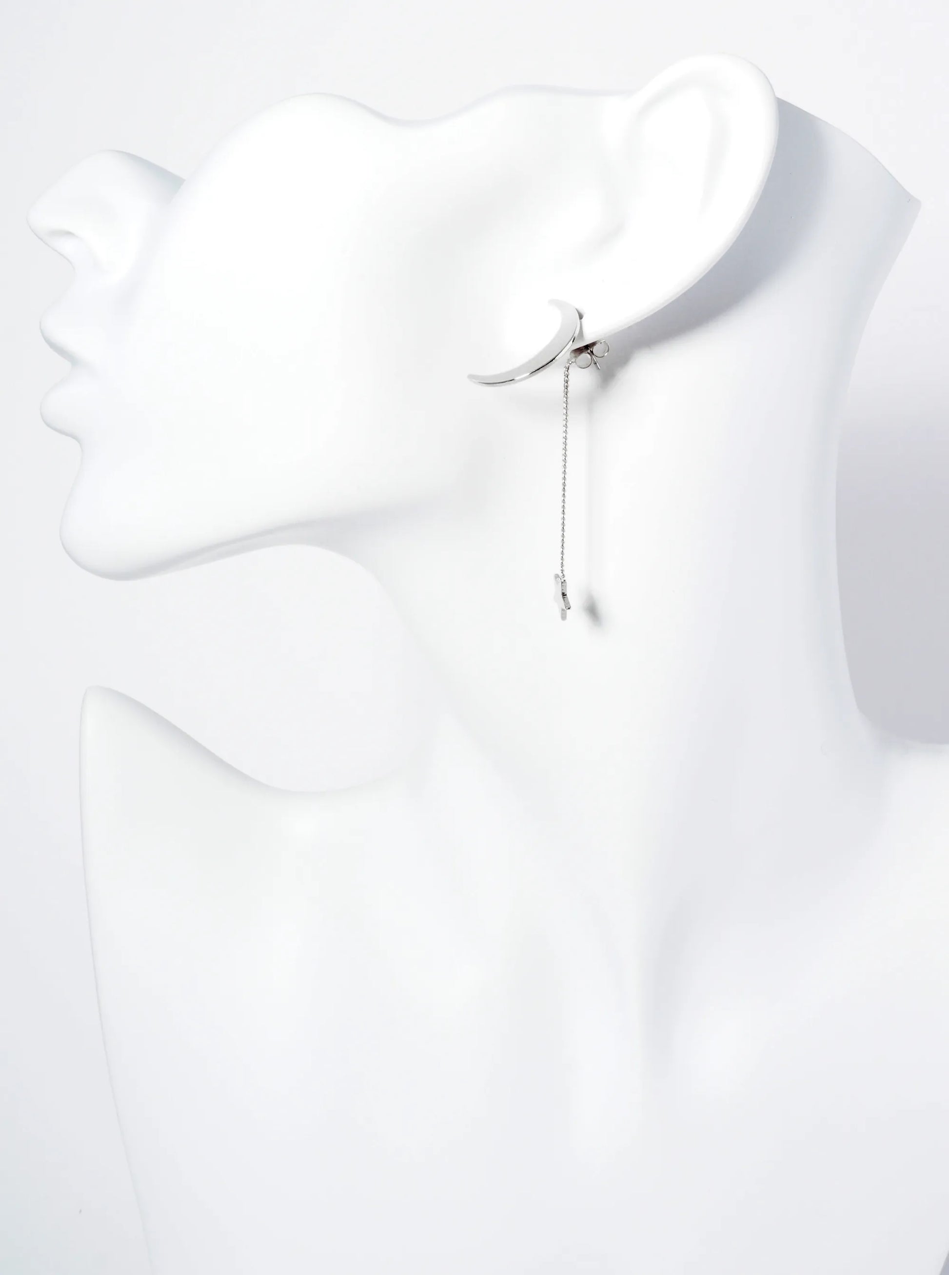 These Earrings Are A Charming And Whimsical Accessory That Combines Elegance With A Touch Of Celestial Magic. Each Earring Features A Sleek, Polished Metal Moon-shaped Stud, Which Offers A Modern And Refined Look. The Moon Studs Have A Smooth, Reflective Surface That Catches The Light Beautifully, Adding A Subtle Shimmer To Your Look.