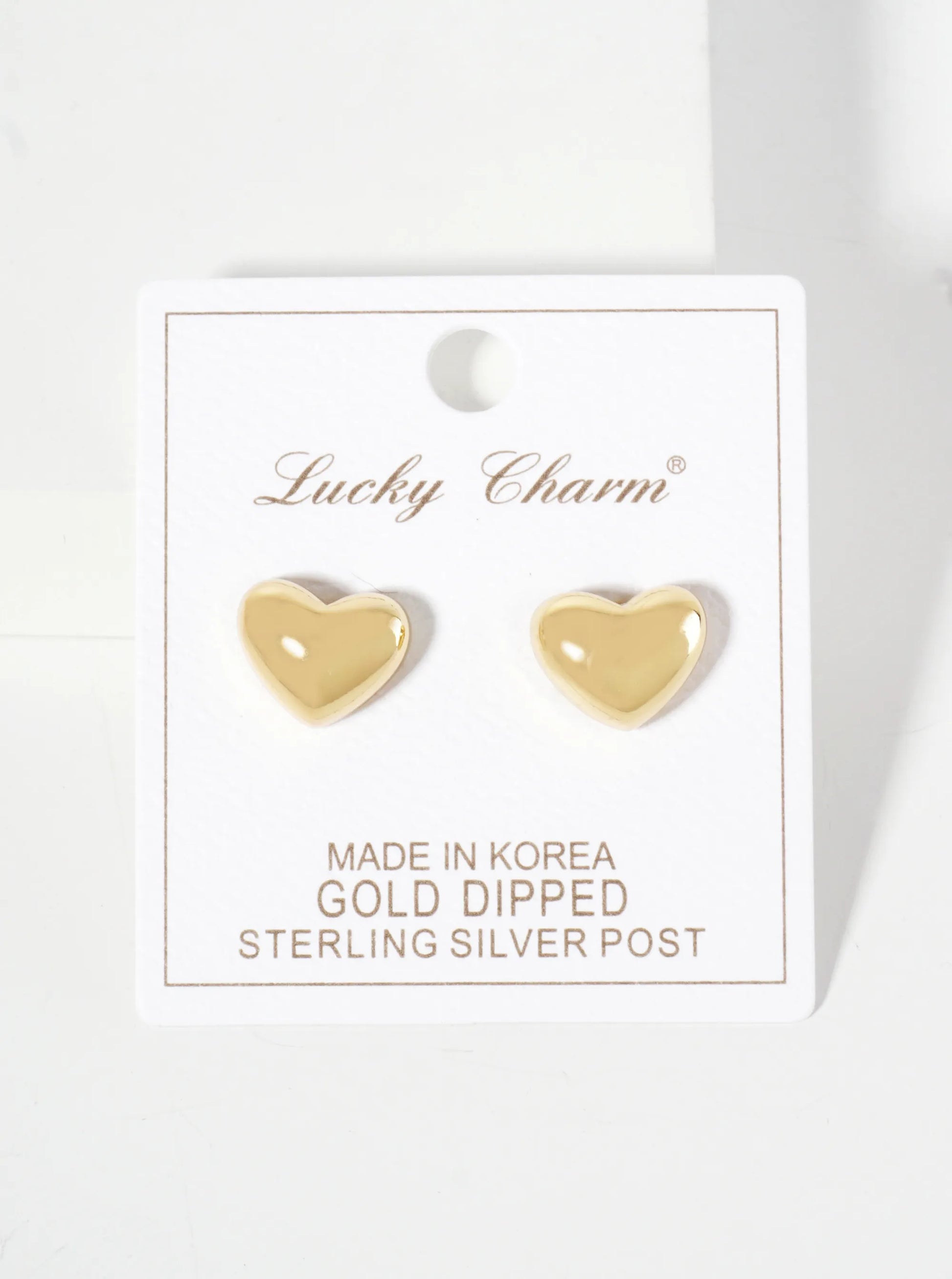 Polished Brass 11mm Heart-Shaped 18K-Gold-Dipped Stud Earrings