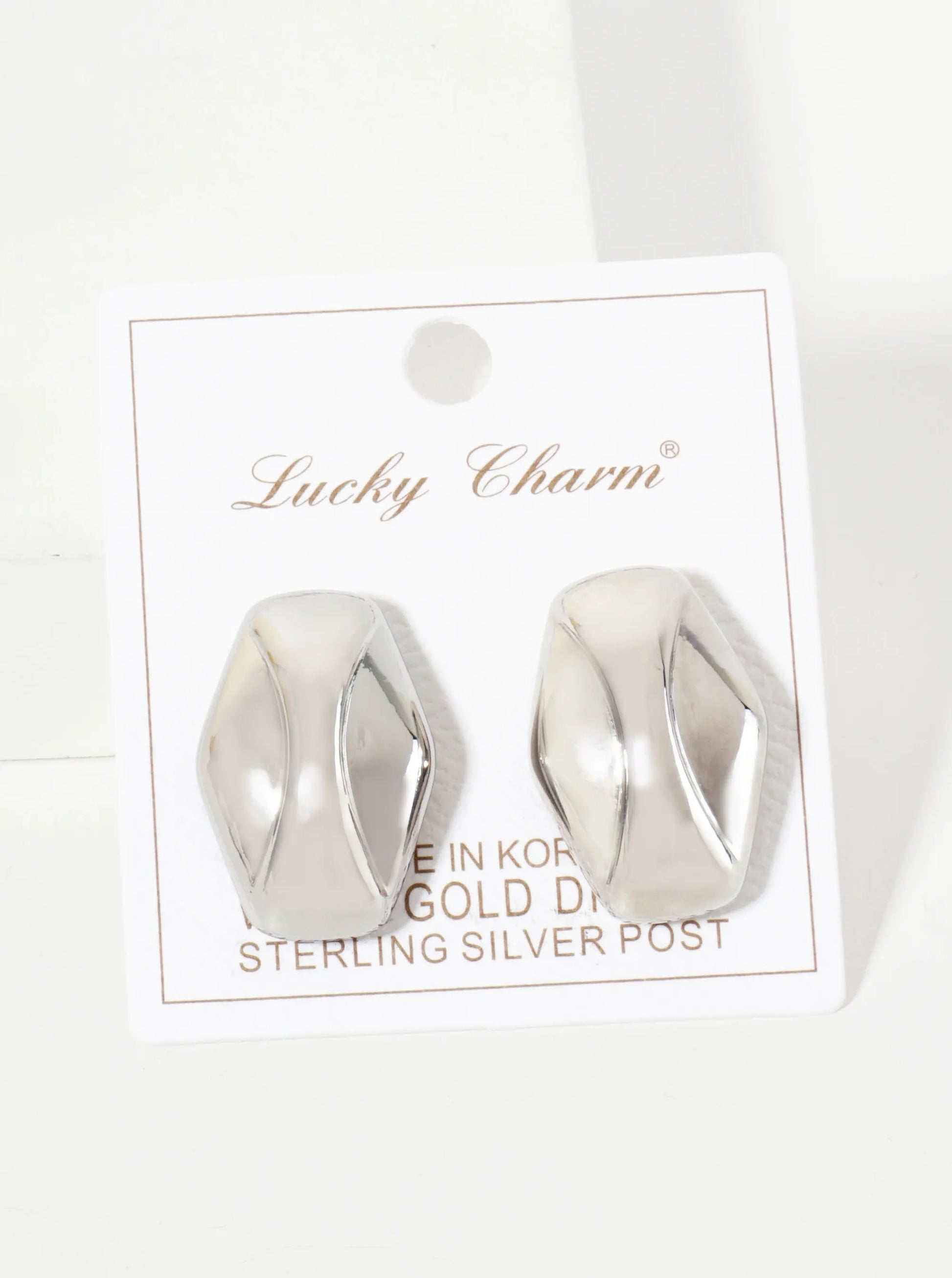 Polished Brass 18K-Gold-Dipped Soft-Curve Lined Hexagon Stud Earrings