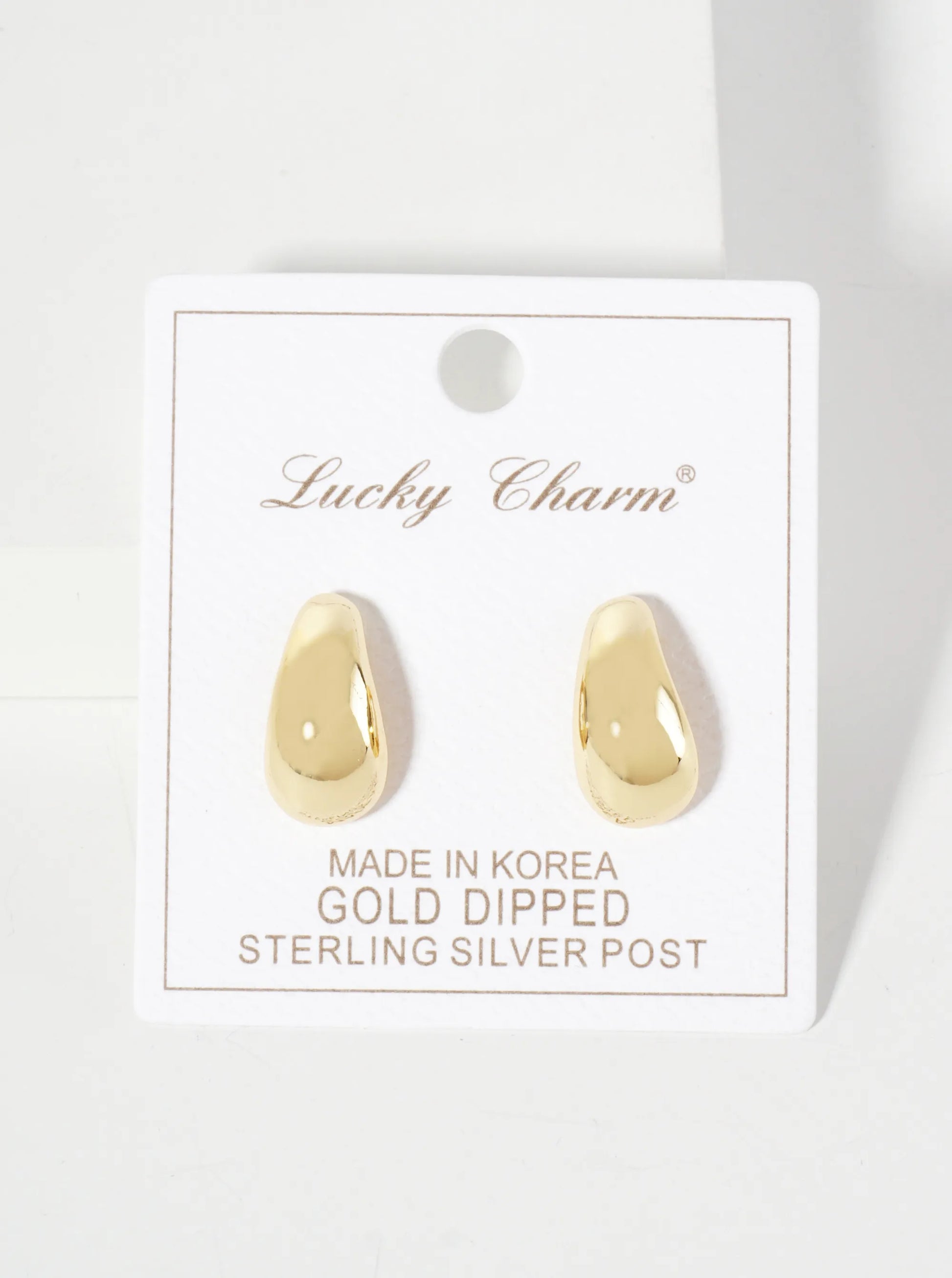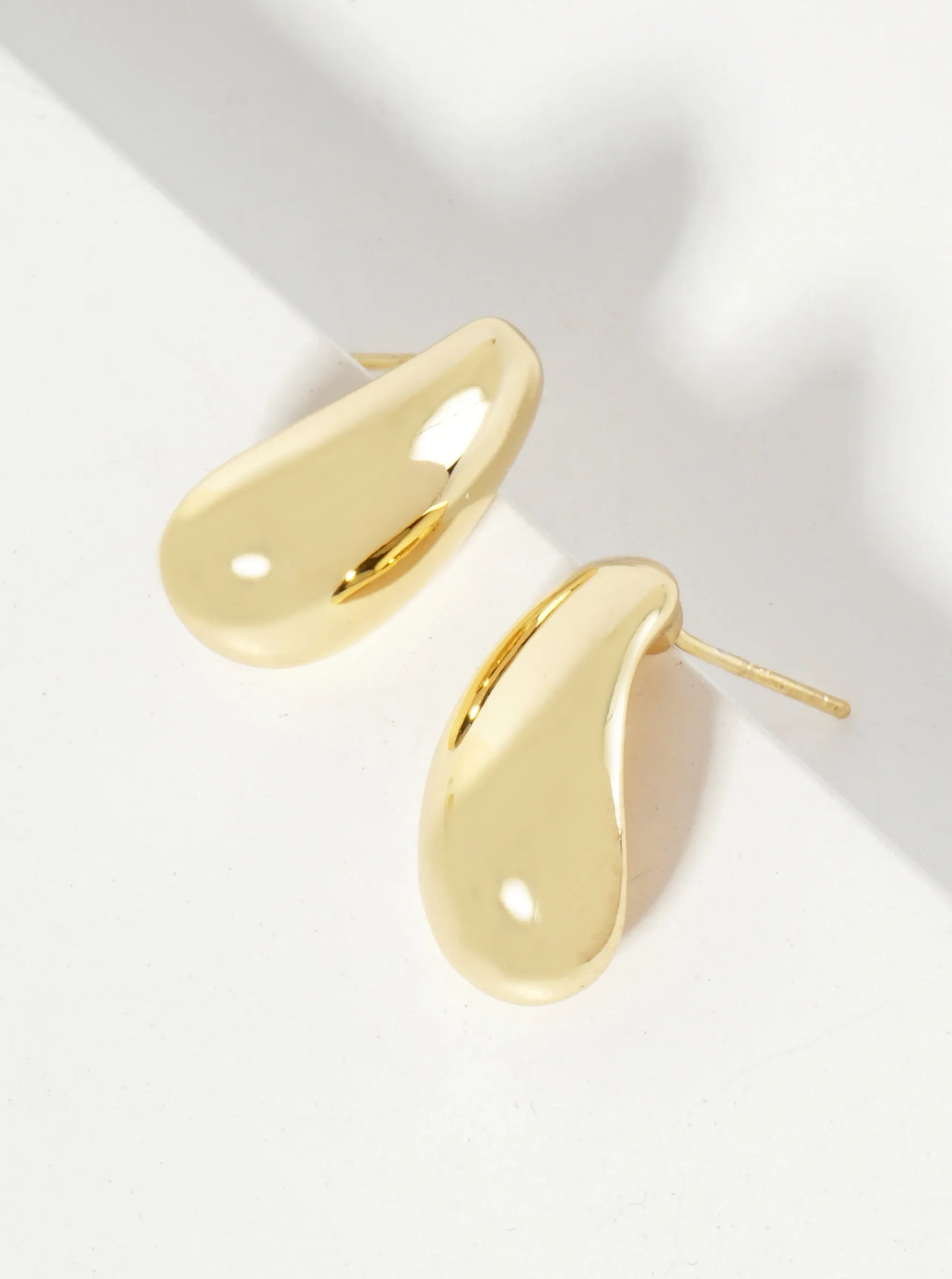 Polished Brass 18mm Teardrop-Shaped 18K-Gold-Dipped Stud Earrings