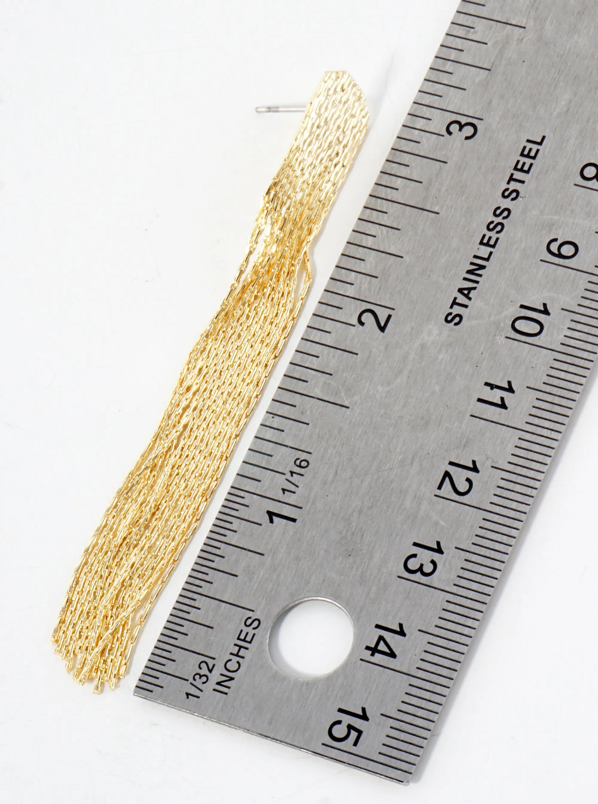 Polished Brass 3-Inch Chain Tassel Fringe Drop Earrings