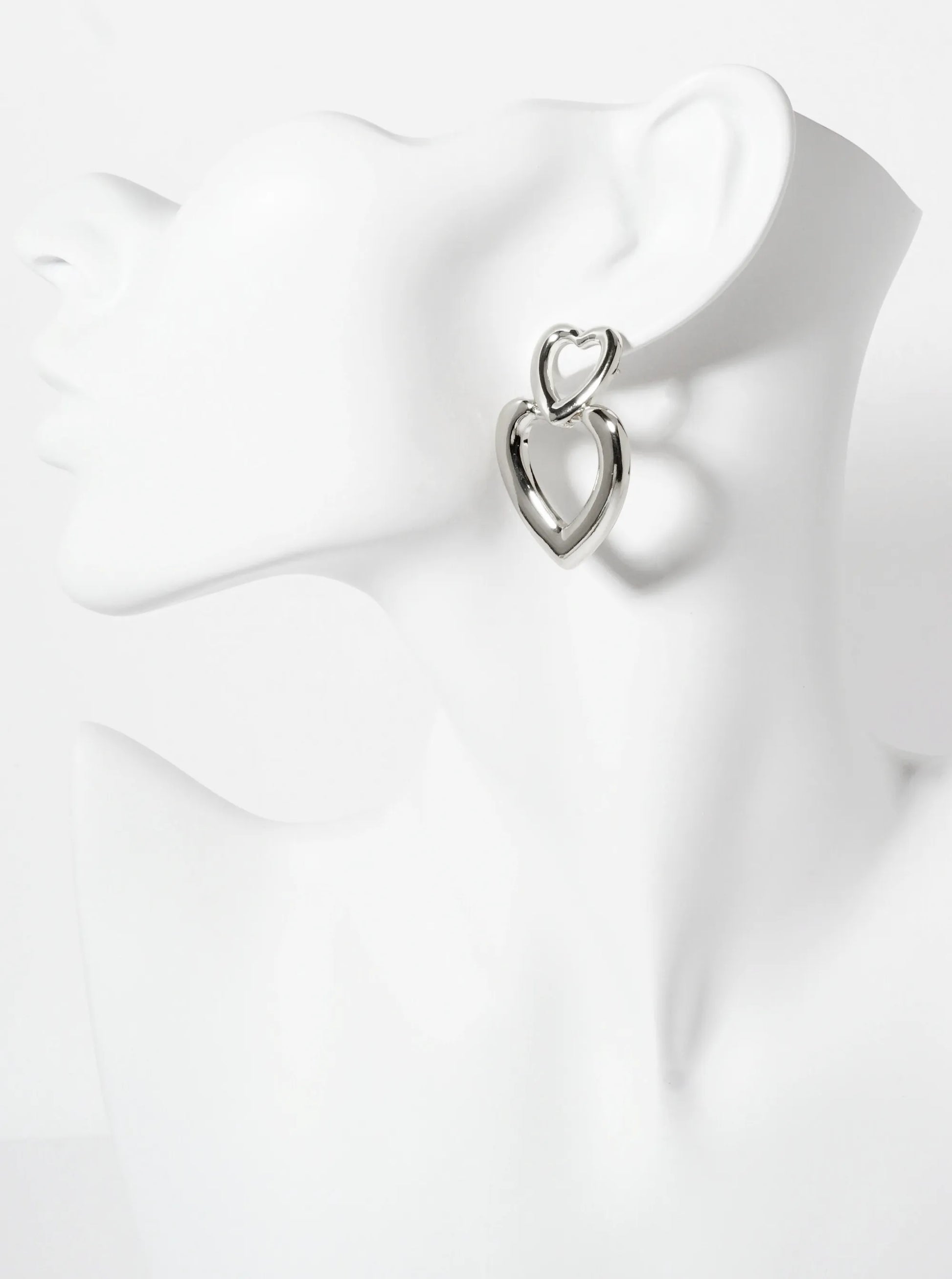 These Earrings Feature A Cutout Double Heart Design, Offering A Blend Of Romantic Charm And Modern Sophistication. Crafted From Polished Brass, The Earrings Showcase Two Intertwined Hearts With An Elegant Open-space Design, Adding A Light And Airy Feel To The Piece. The Cutout Detail Enhances The Graceful, Fluid Shape Of The Hearts, Creating A Delicate Yet Bold Statement.