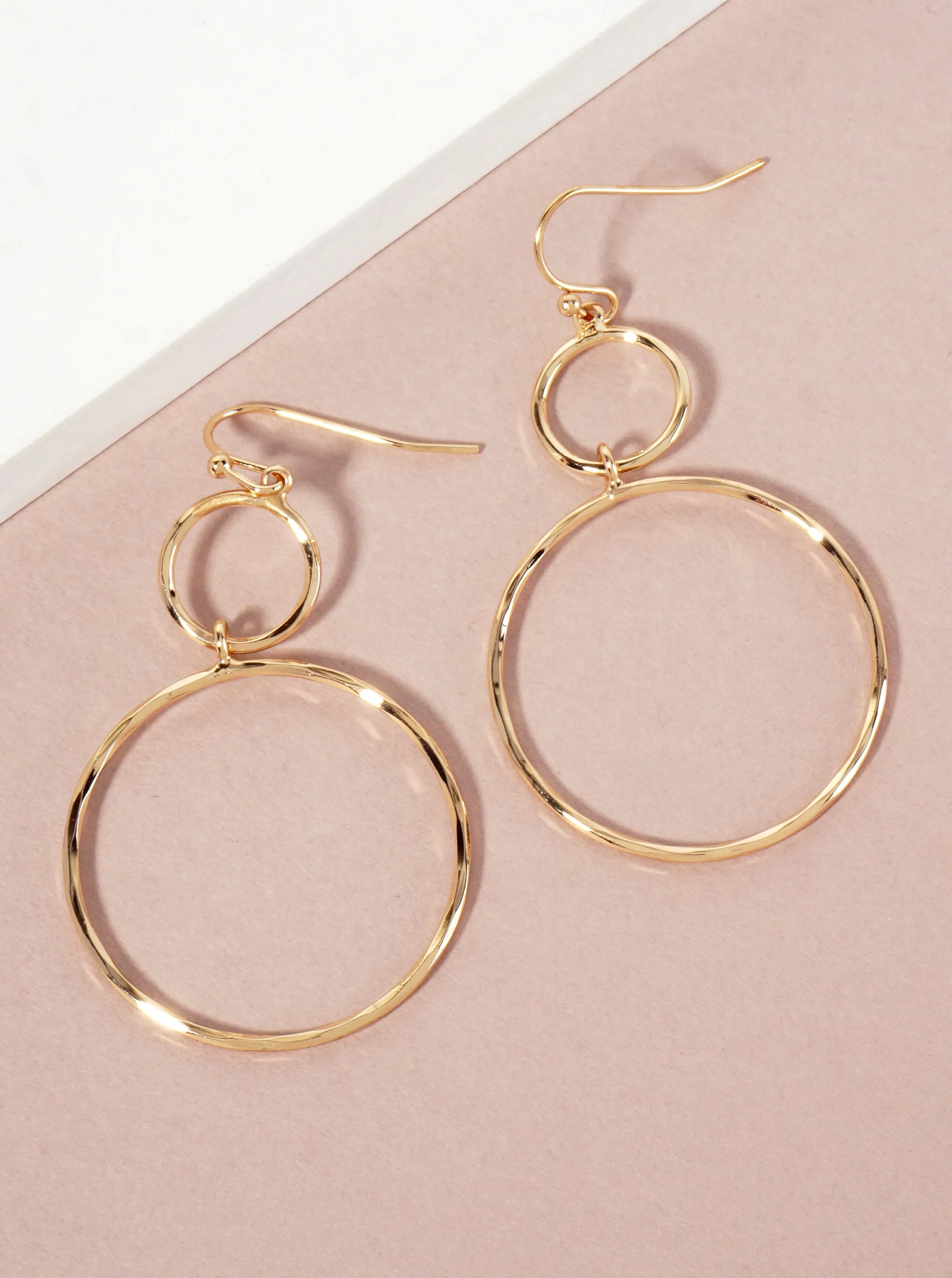 Polished Brass Double Circle Drop Lightweight Dangle Earrings