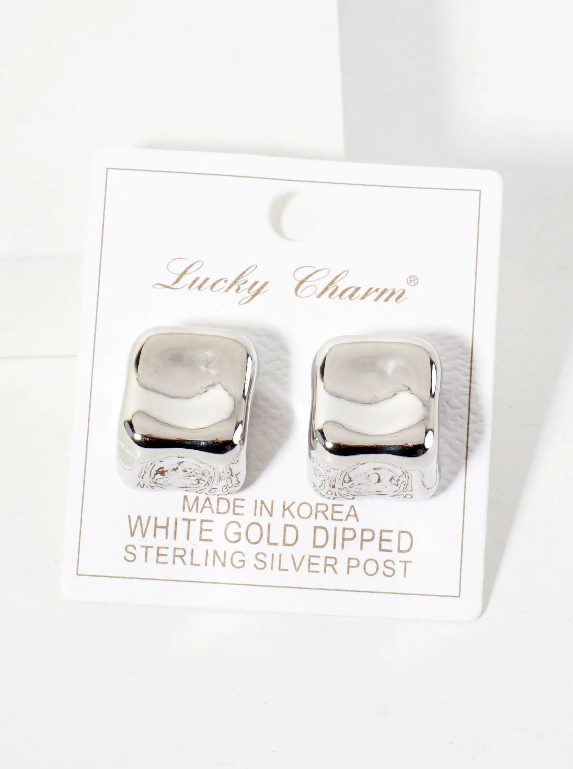 Polished Brass Hand-Molded Organic Square-Shaped 18K-Gold-Dipped Stud Earrings