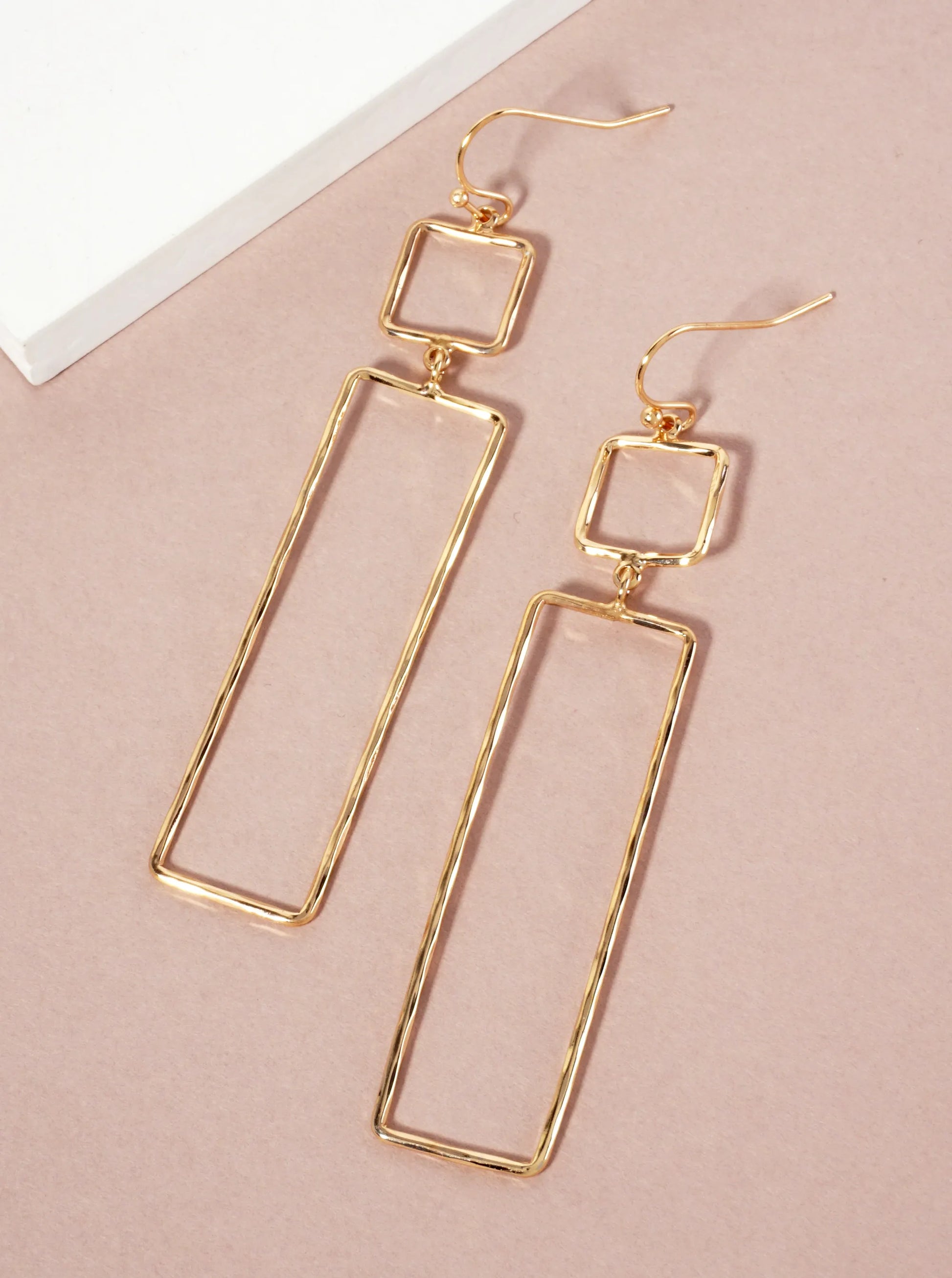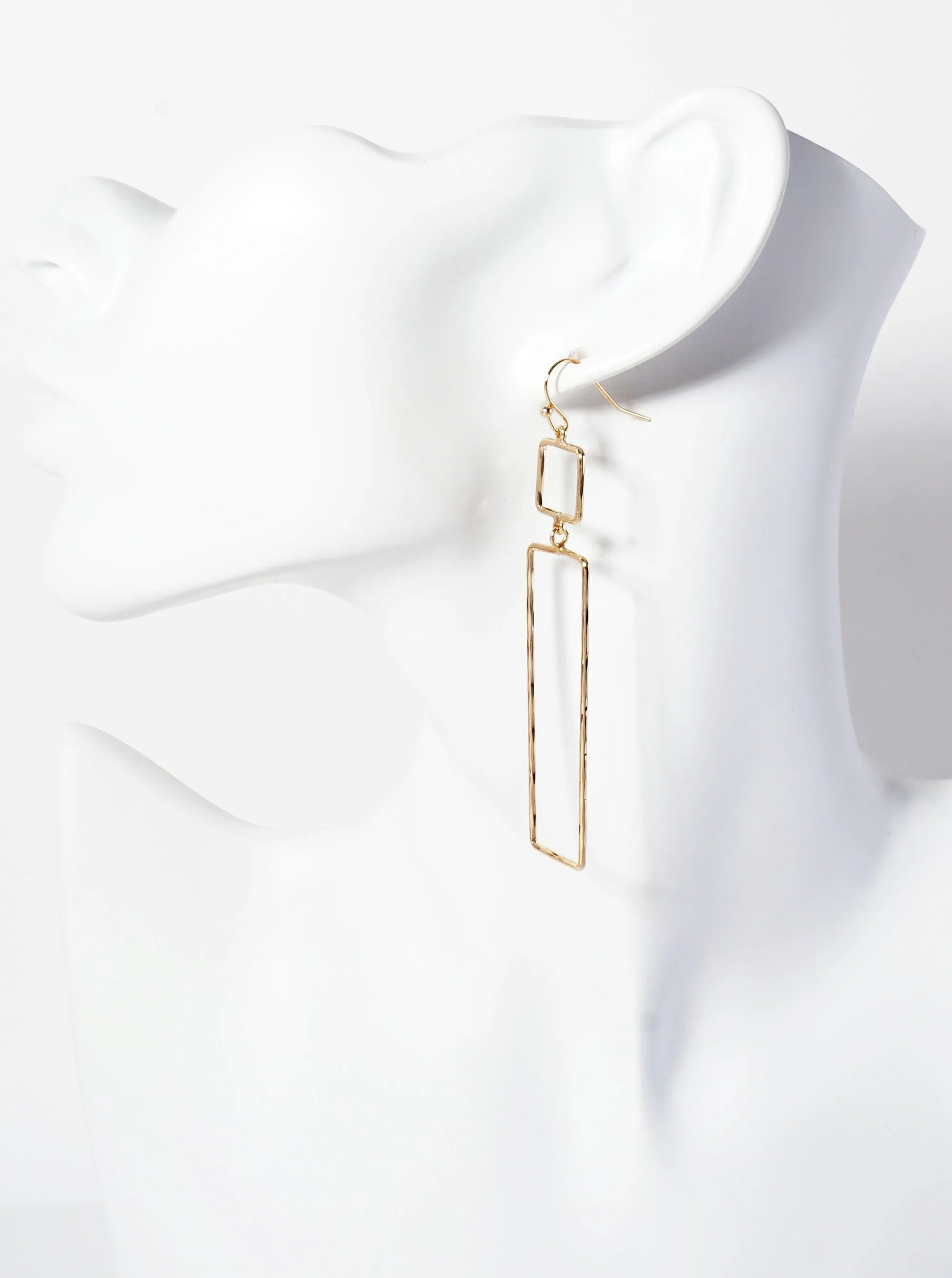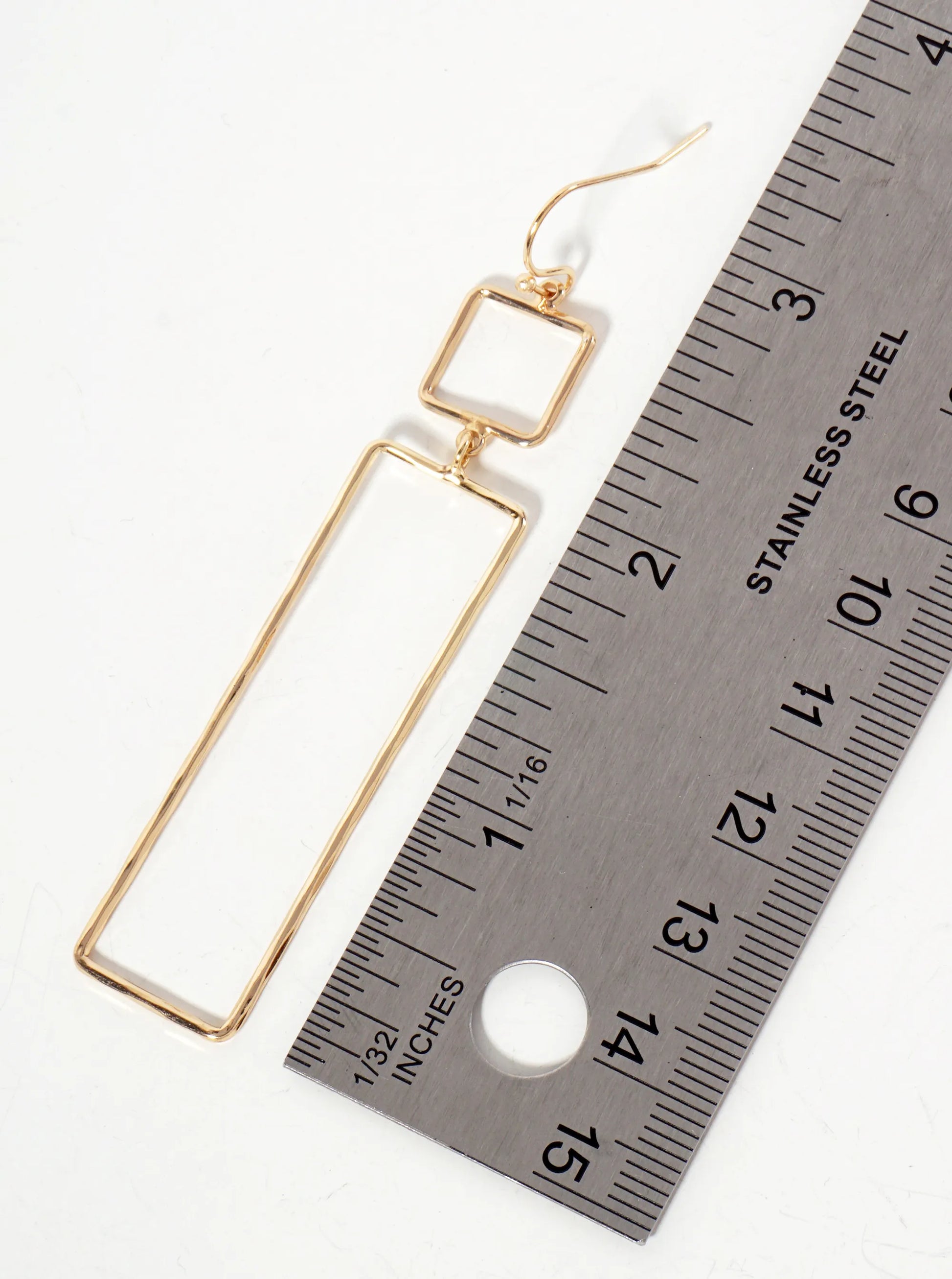The Rectangular Elements Dangle Freely, Allowing For Gentle Movement That Adds Dynamic Interest To The Design. The Simplicity Of The Geometric Shape, Combined With The Polished Brass Material, Creates A Striking Yet Versatile Look That Complements Both Casual And Formal Outfits.