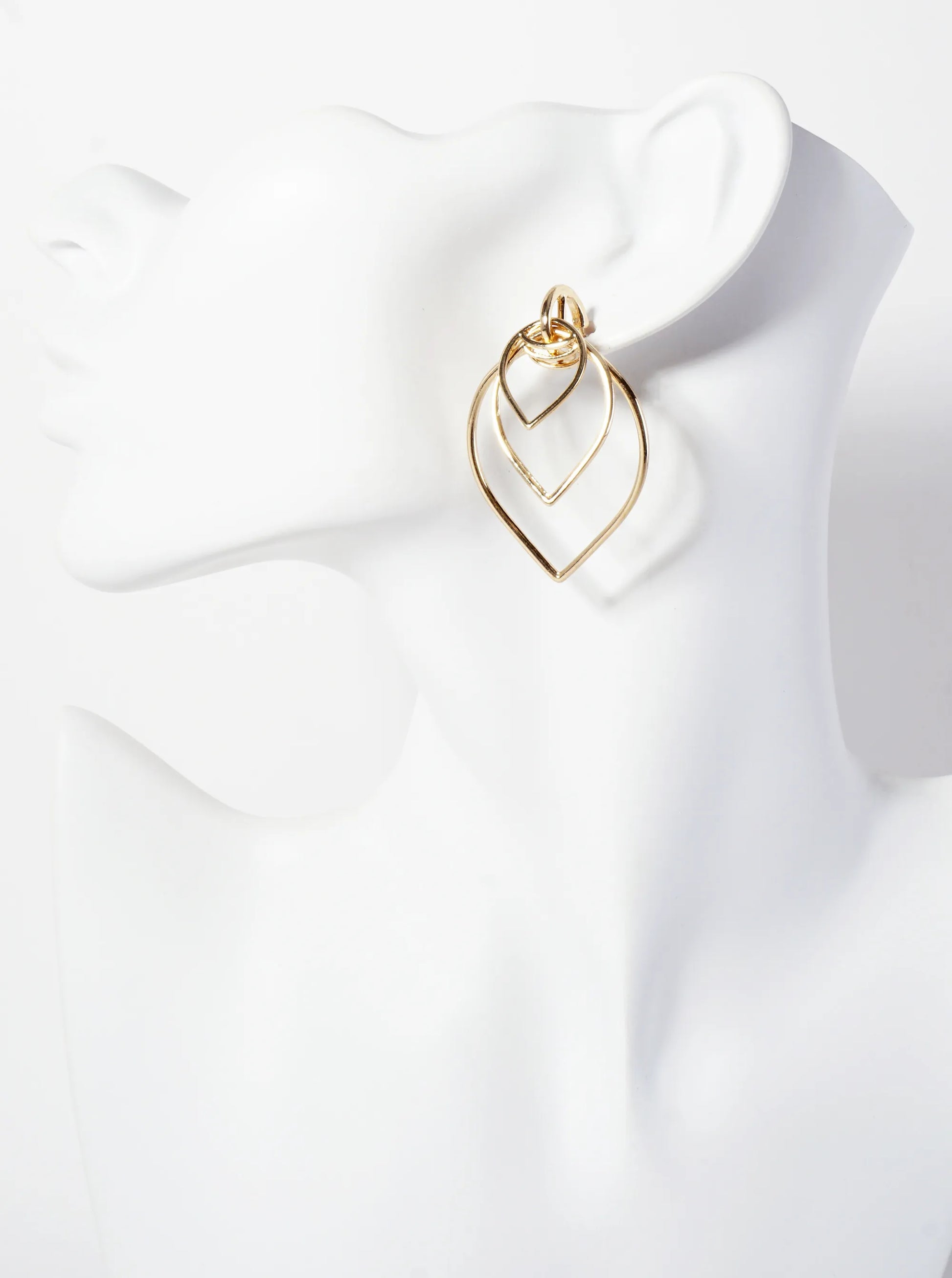 Polished Metal Layered Upside-Down Teardrop Dangle Earrings