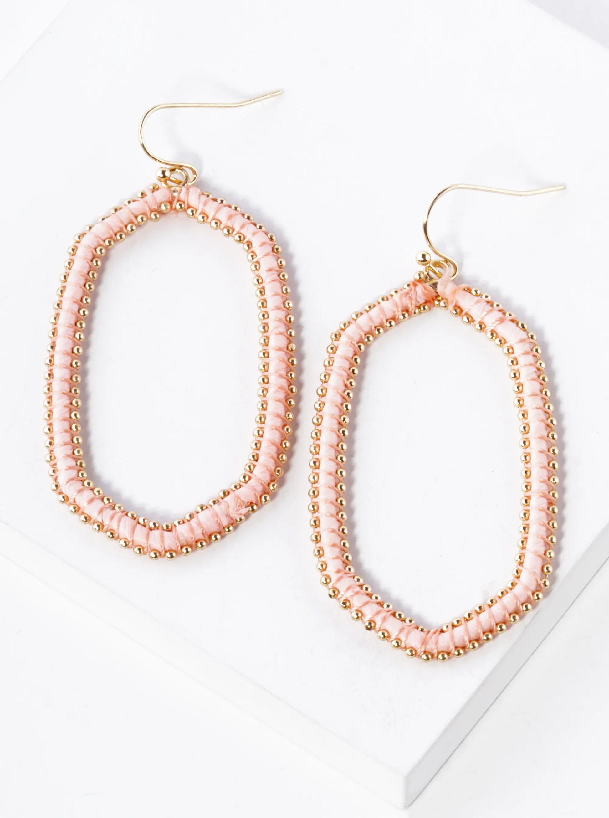 Raffia Thread Wrapped Long Hexagon Dangle Drop Earrings