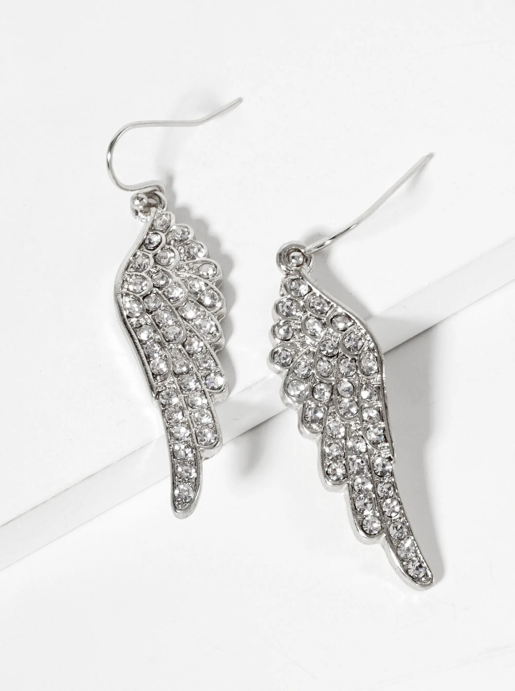 Religious-Theme Crystal-Pave Symmetrical Angel-Wings Drop Earrings