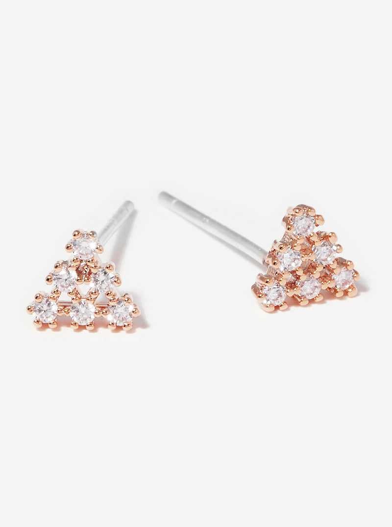 Rose Gold Dipped CZ Pave Triangle Sterling Silver Post Stud Earrings
