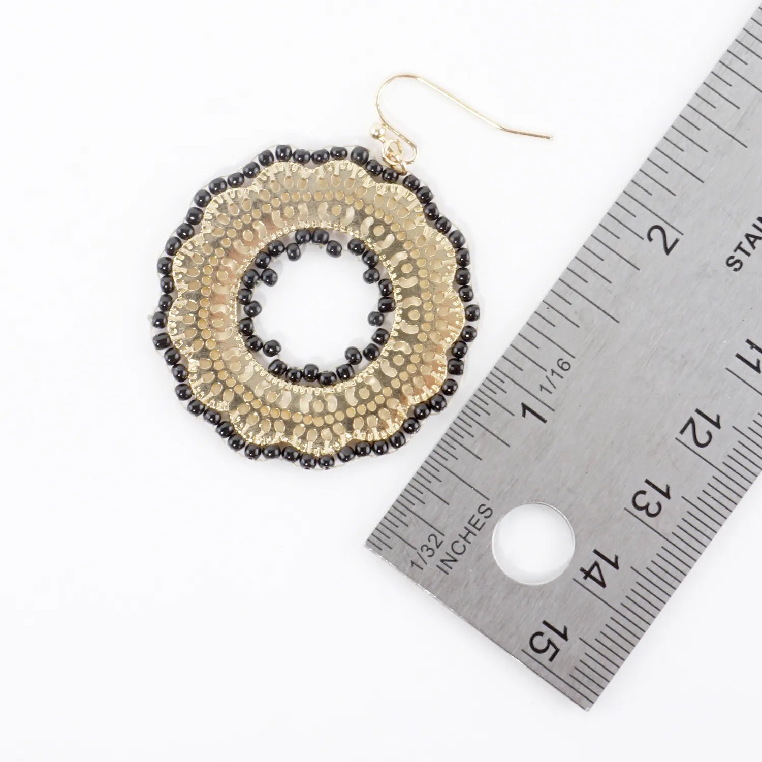 Round Stenciled Seed Beads Wrapped Dangle Earrings