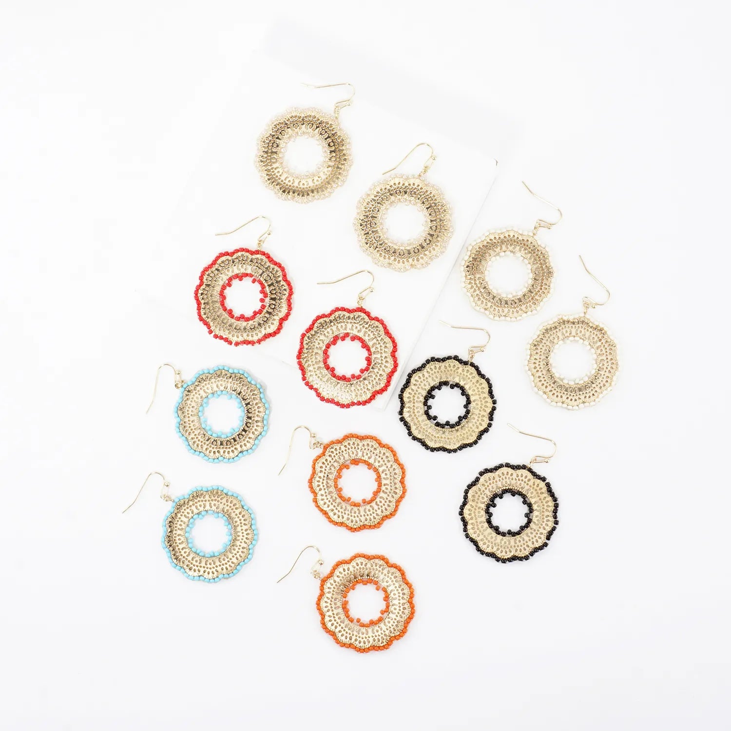 Introducing The GSE4754 Dangle Earrings—a Perfect Blend Of Modern Artistry And Timeless Elegance. These Woven Treasures Feature An Enticing Donut Shape Crafted From Zinc Alloy, Seed Beads, And Glass, Offering A Unique Texture And Abstract Sculptural Design That Captivates. Ideal For A Variety Of Occasions, From Casual Outings To Formal Events, These Earrings Provide Versatility And Align With Current Jewelry Trends. Their Lightweight, 1.5-inch Drop With A Secure Fish Hook Closure Ensures All-day Comfort. Retailers Will Appreciate Their Broad Appeal, Promising High Sell-through Rates And Effortless Integration Into Any Collection.