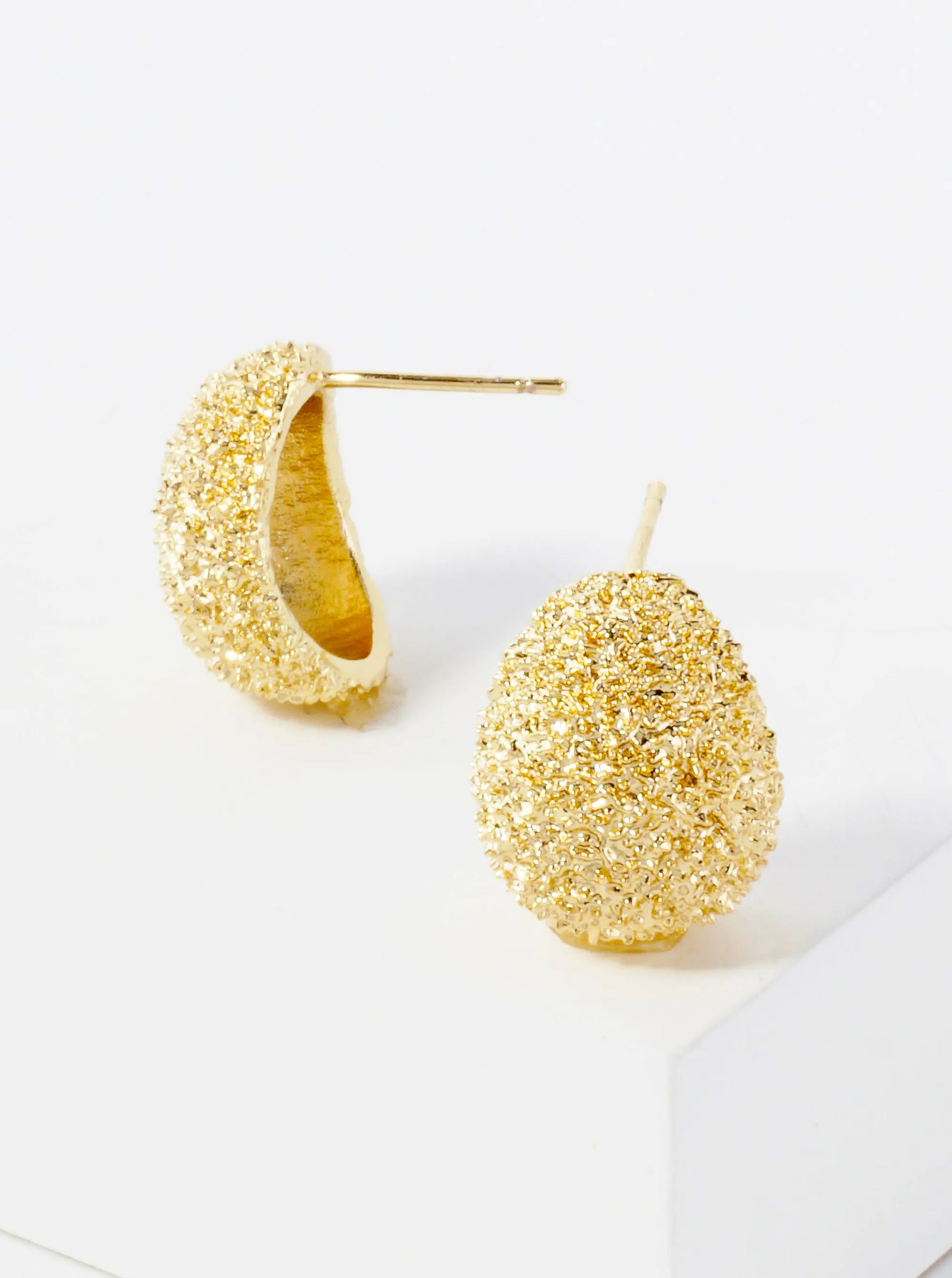 Soft Curves Meet Tactile Detail In These Teardrop-shaped Button Studs, Designed With A Unique Sand-textured Surface That Adds Subtle Depth And Organic Charm. Crafted From Brass And Dipped In 14K Gold, They Offer A Radiant Finish That Feels Both Refined And Earthy.