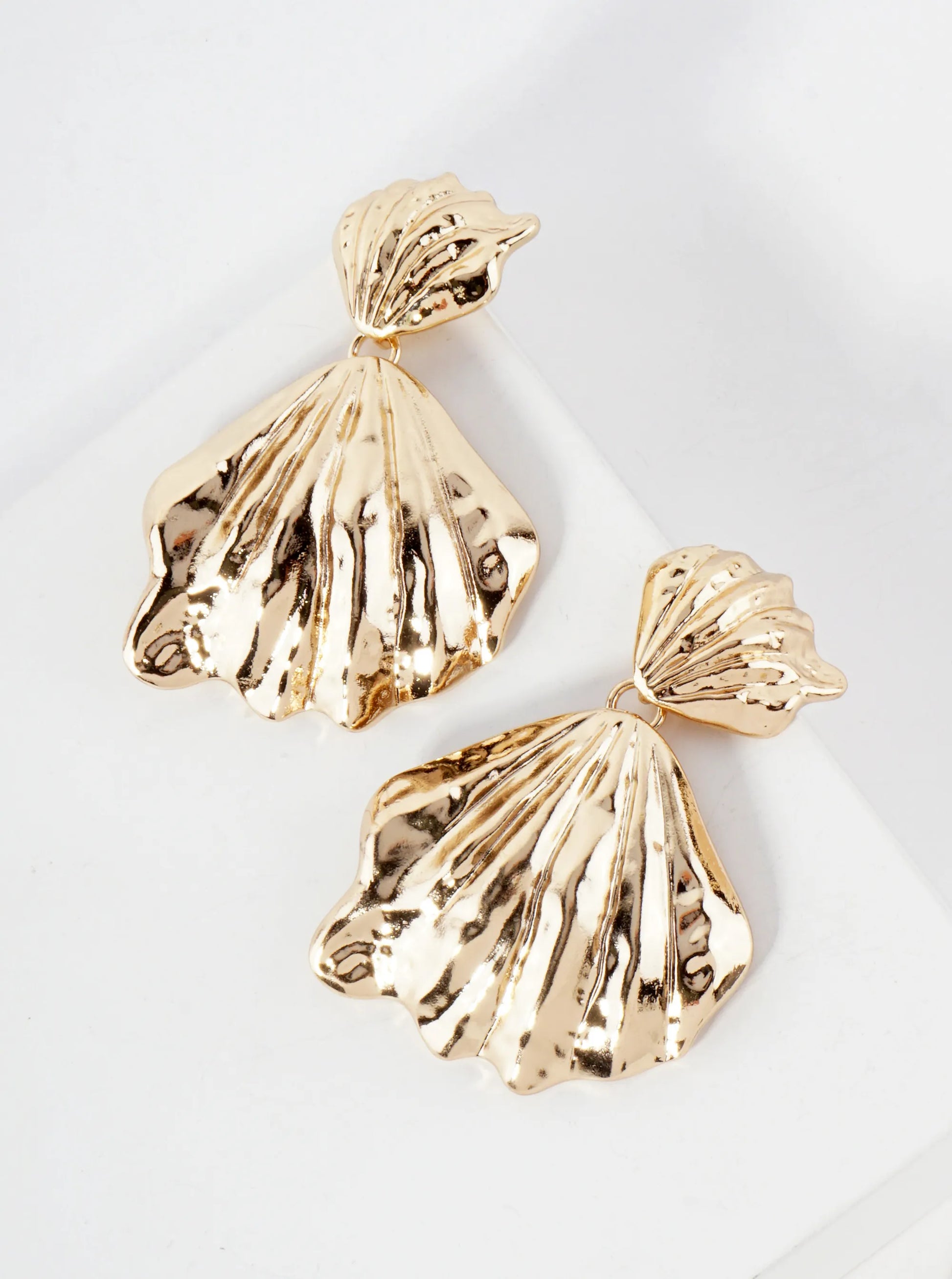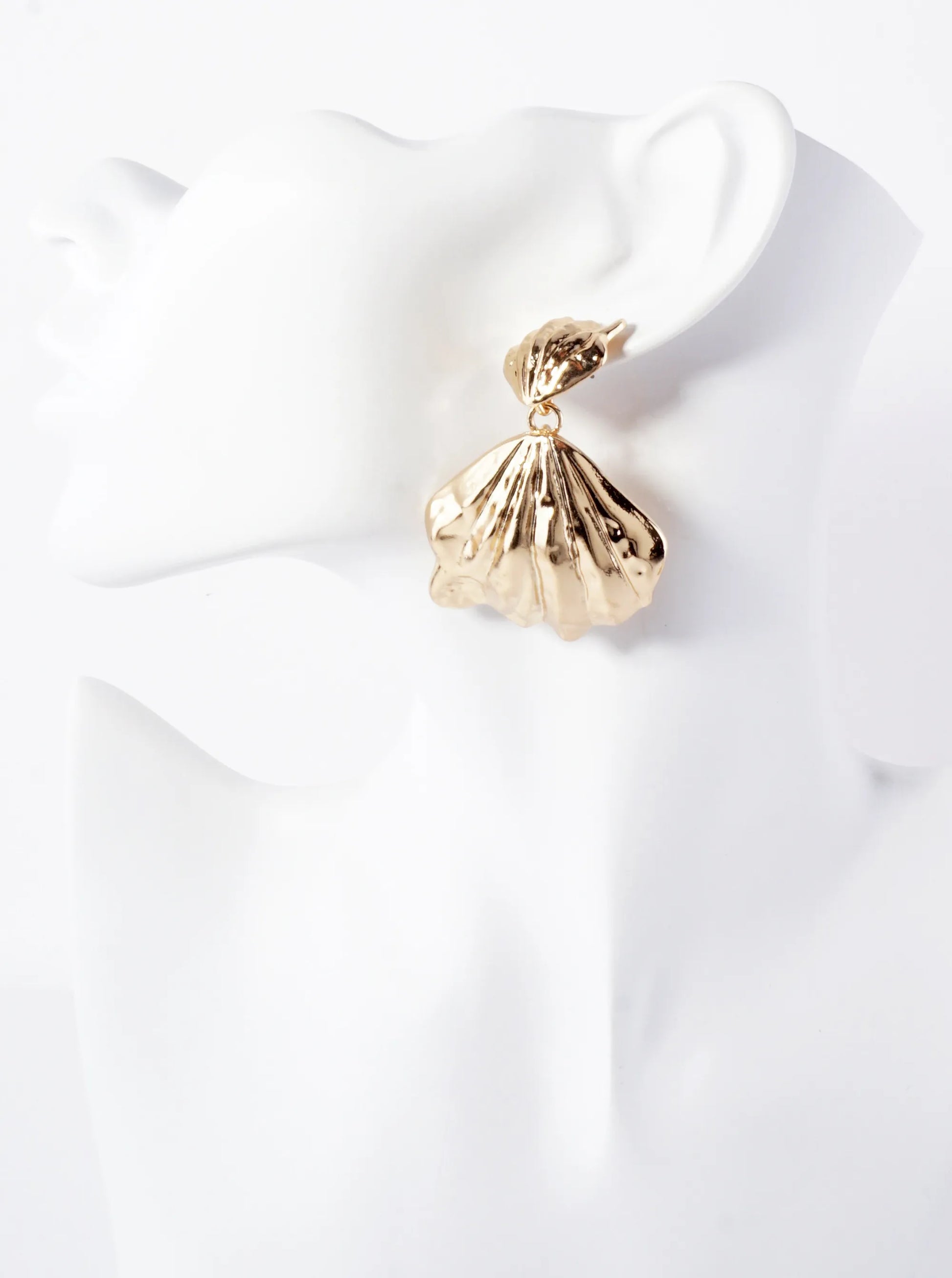 Channel Coastal Elegance With These Sea-Life Hammered-Texture Double Shell Dangle Earrings. Inspired By The Beauty Of The Ocean, Each Earring Features A Tiered Shell Design—two Metallic Shells Stacked For Movement And Dimension.