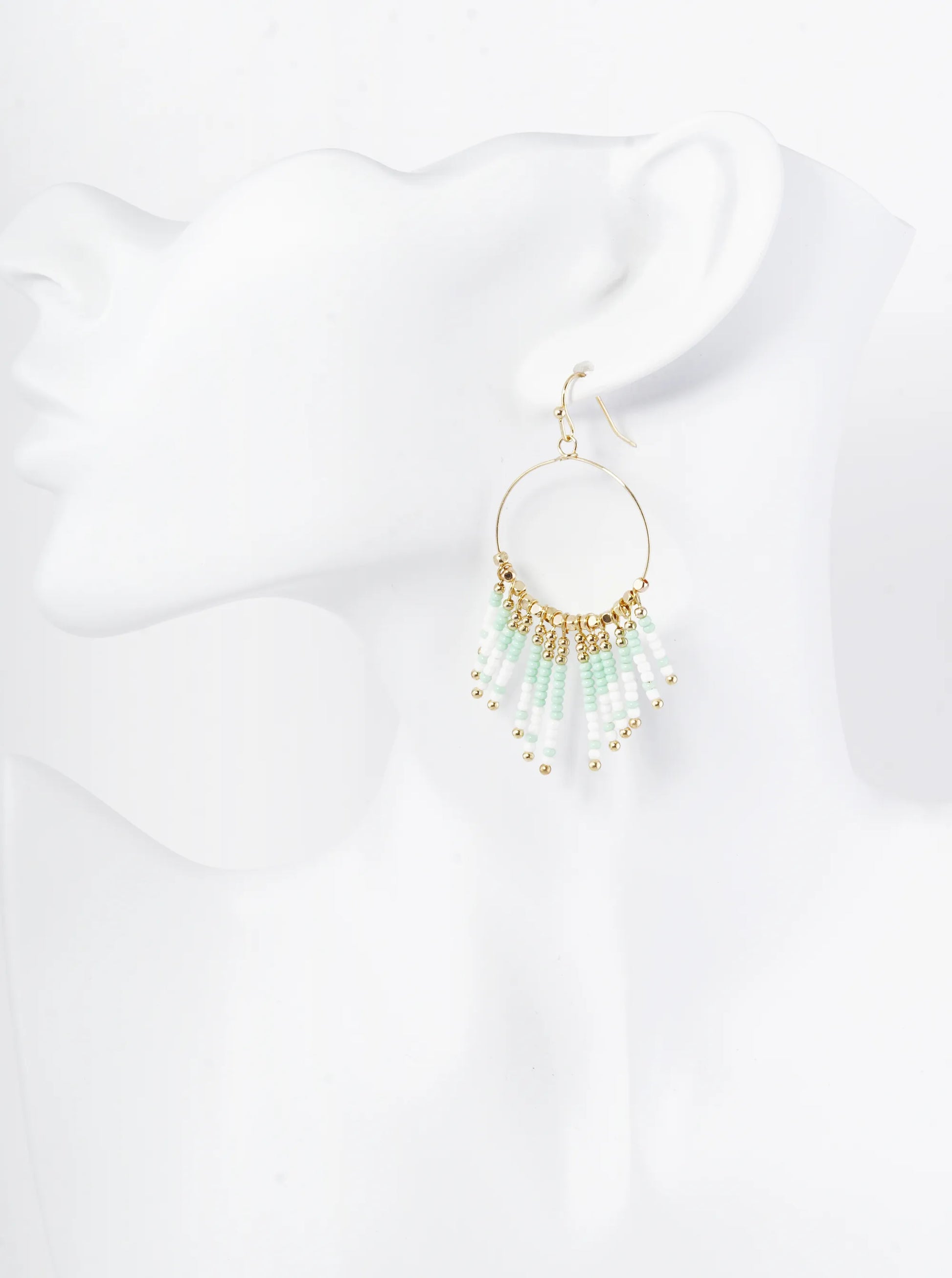 Seed Beaded Fringe Drop Wire Circle Dangle Drop Earrings
