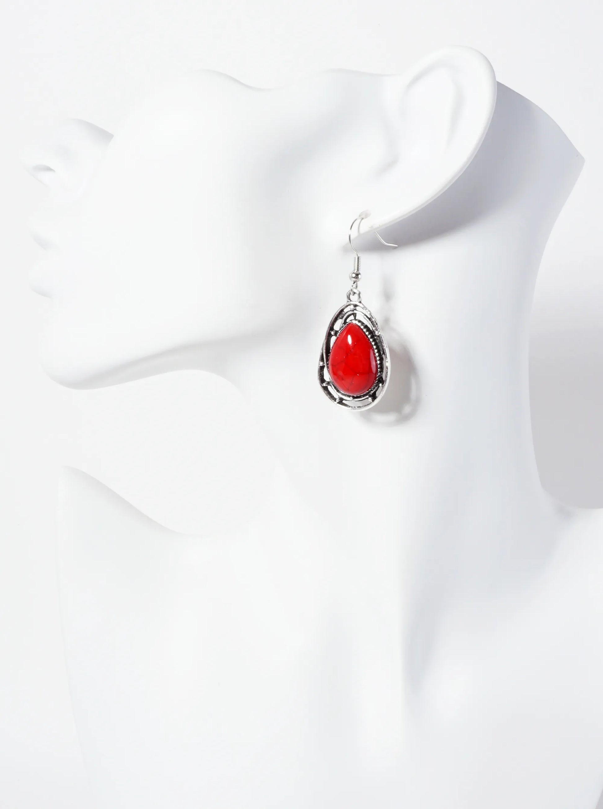Semi-Precious Natural-Stone Teardrop Dangle Earrings