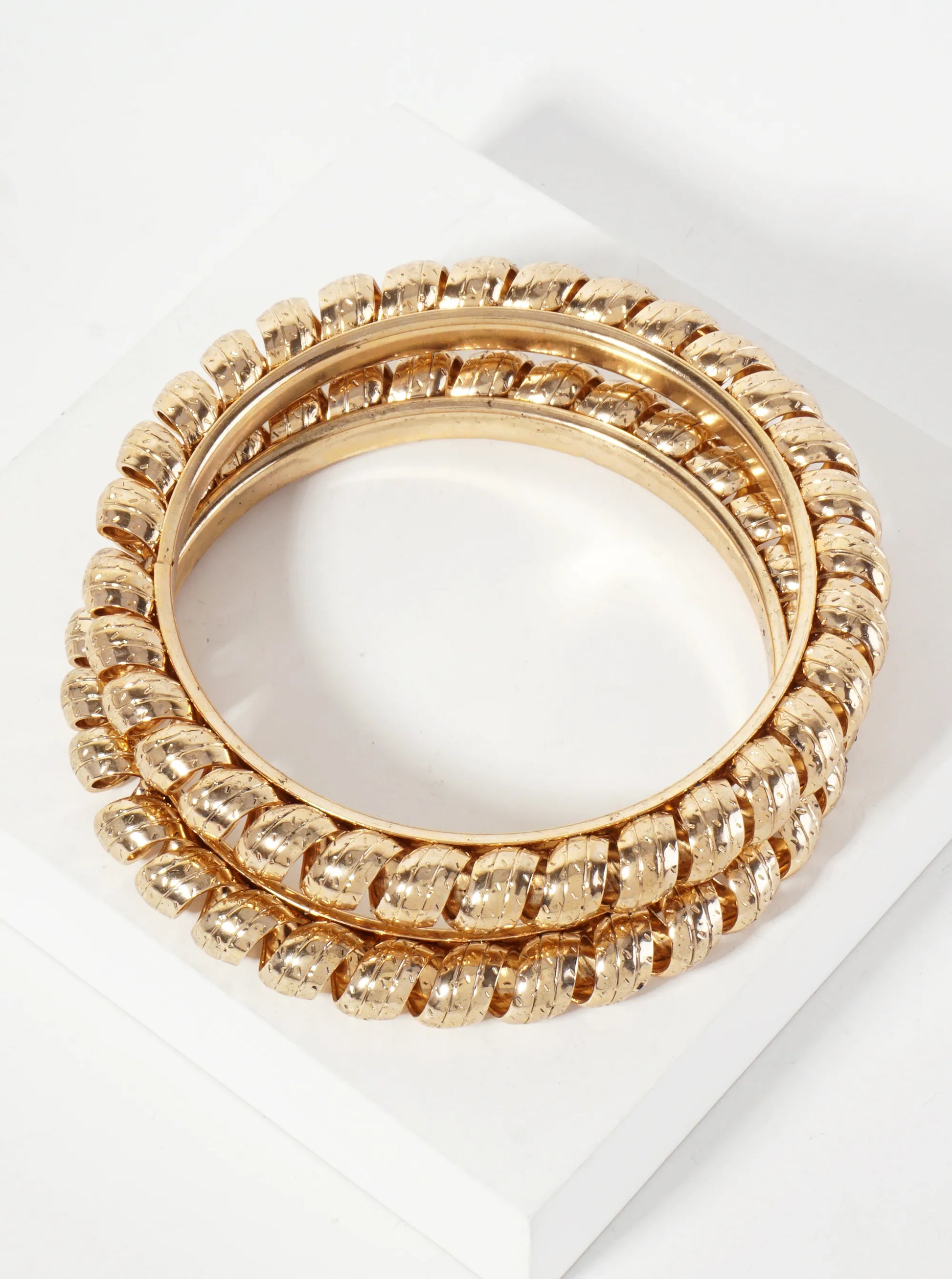 These Bracelets Featuring Two 8mm-wide Bangles With An Intricate Spiral Texture, Adding A Unique And Dynamic Look. The Spiral Design Creates Visual Interest And A Modern, Sculptural Feel. Crafted For Durability And Style, These Bracelets Can Be Worn Together For A Stacked Effect Or Individually For A Sleek, Bold Statement.