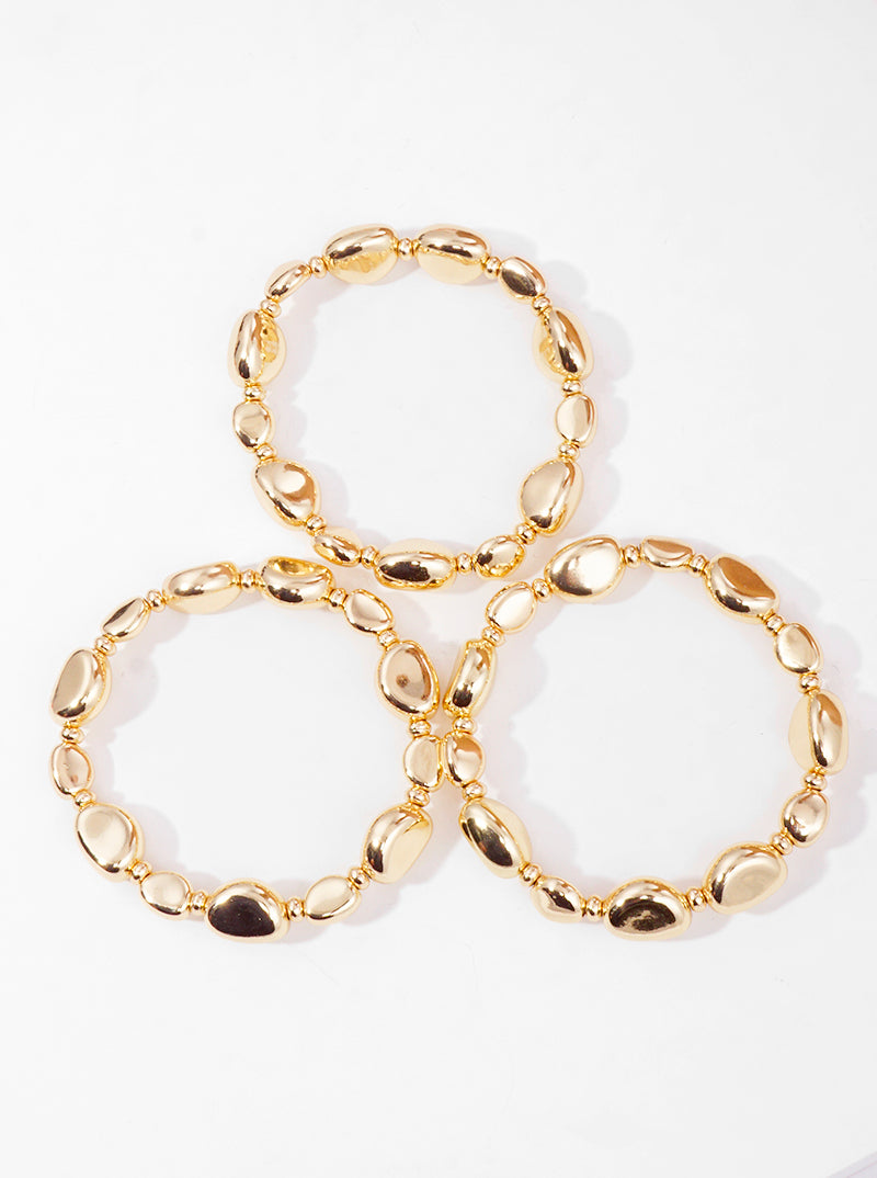 Set Of 3 Bean Shaped Metallic Bead Stackable Stretch Bracelet