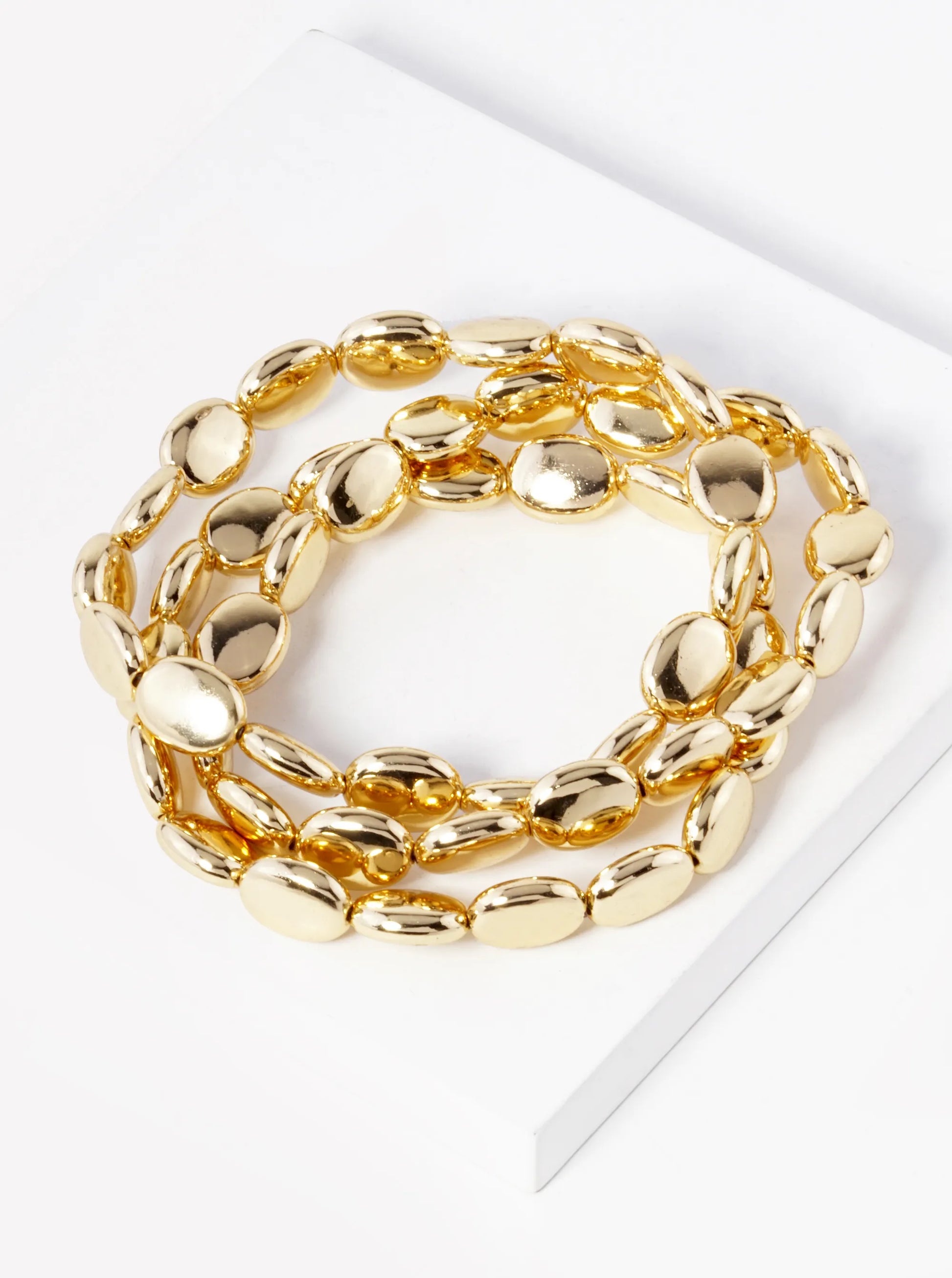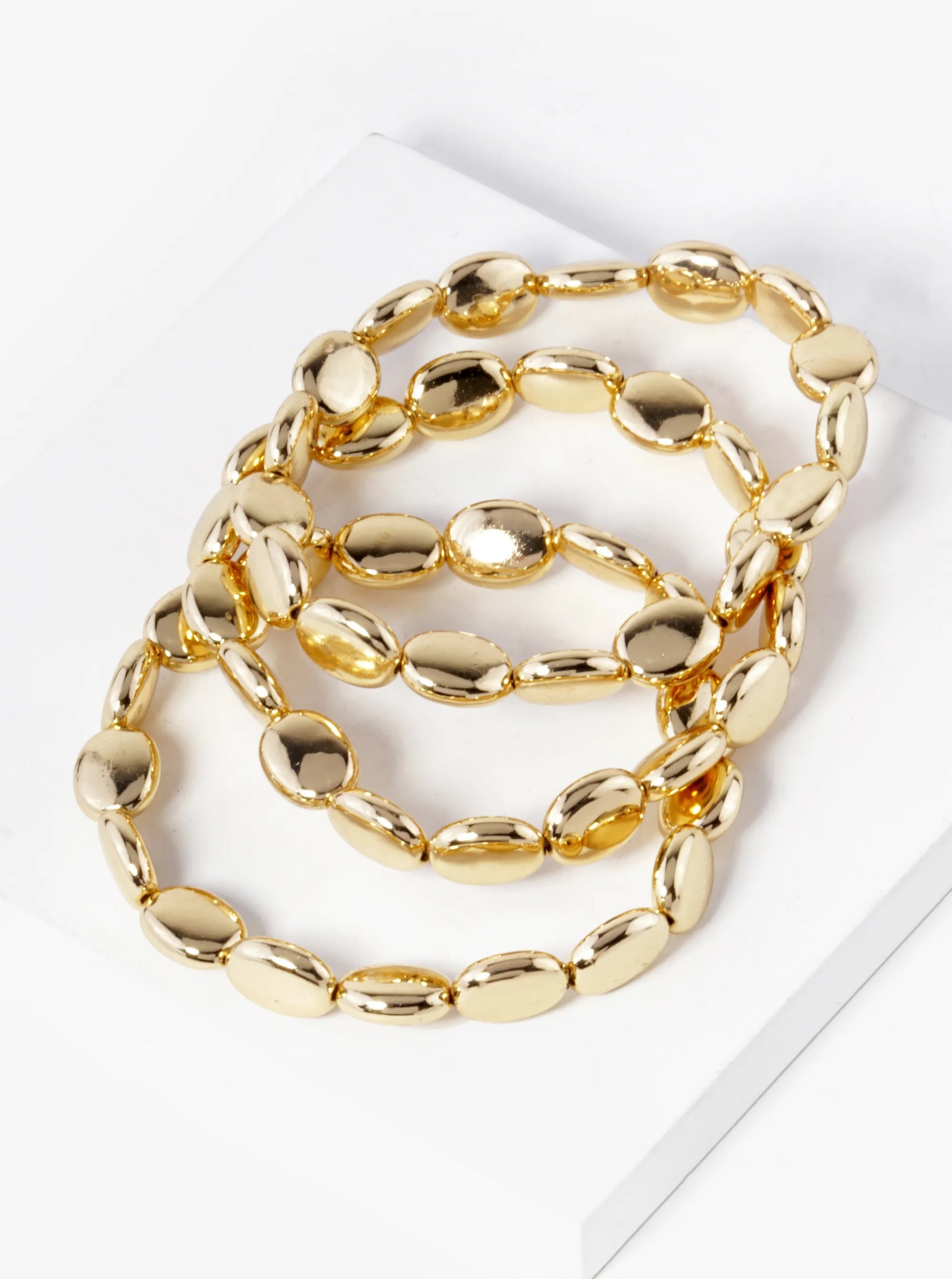 Set Of 3 Metallic Bean Shape Beads Stackable Stretch Bracelet
