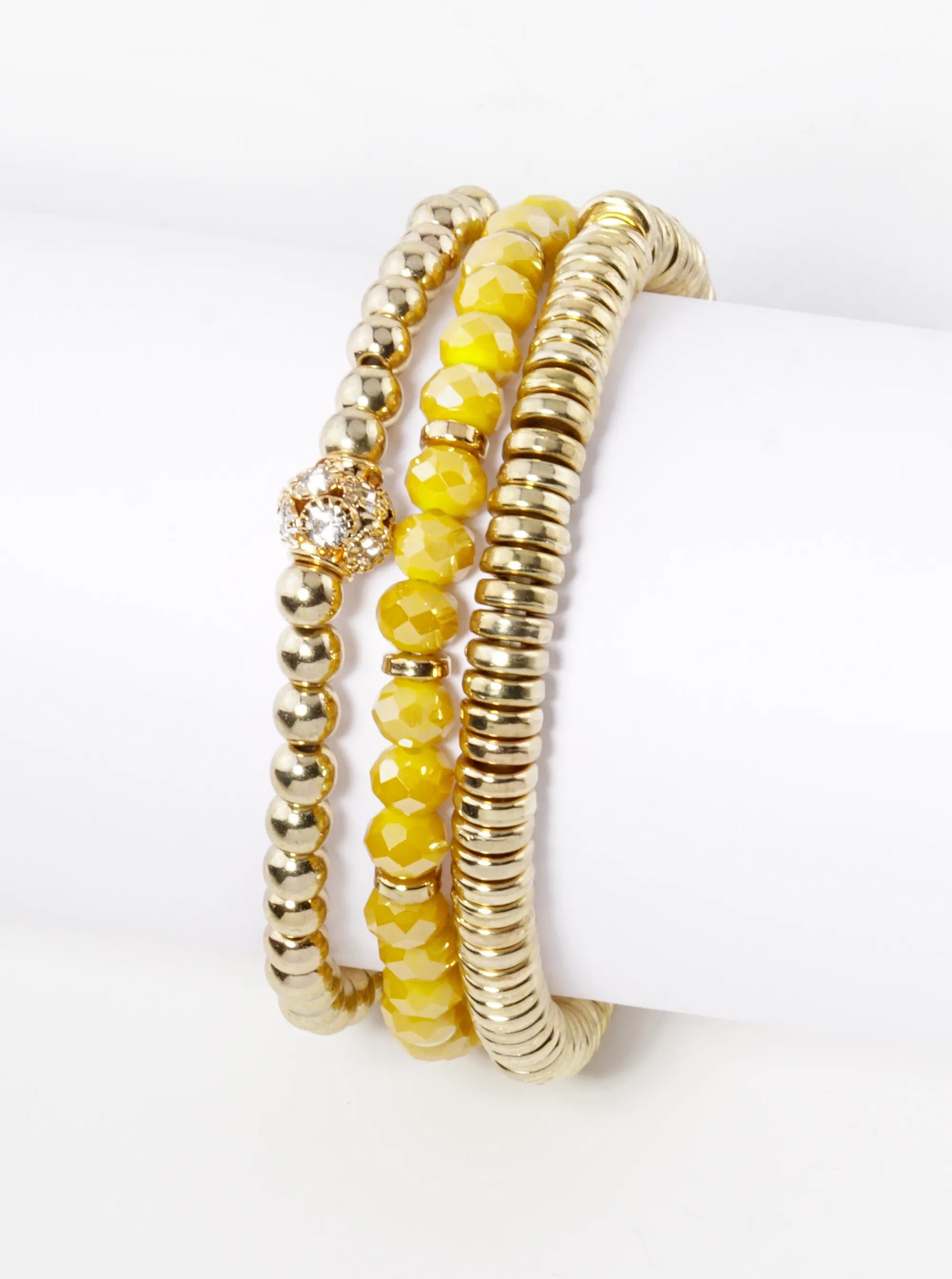 This Set Of Three Beaded Stretch Bracelets Is The Perfect Accessory For Your Store! Featuring The Shiny Beads Sparkle In The Light. The Stackable Design Adds Variety And Elegance To Any Outfit And Is Sure To Be A Hit In Any Season.