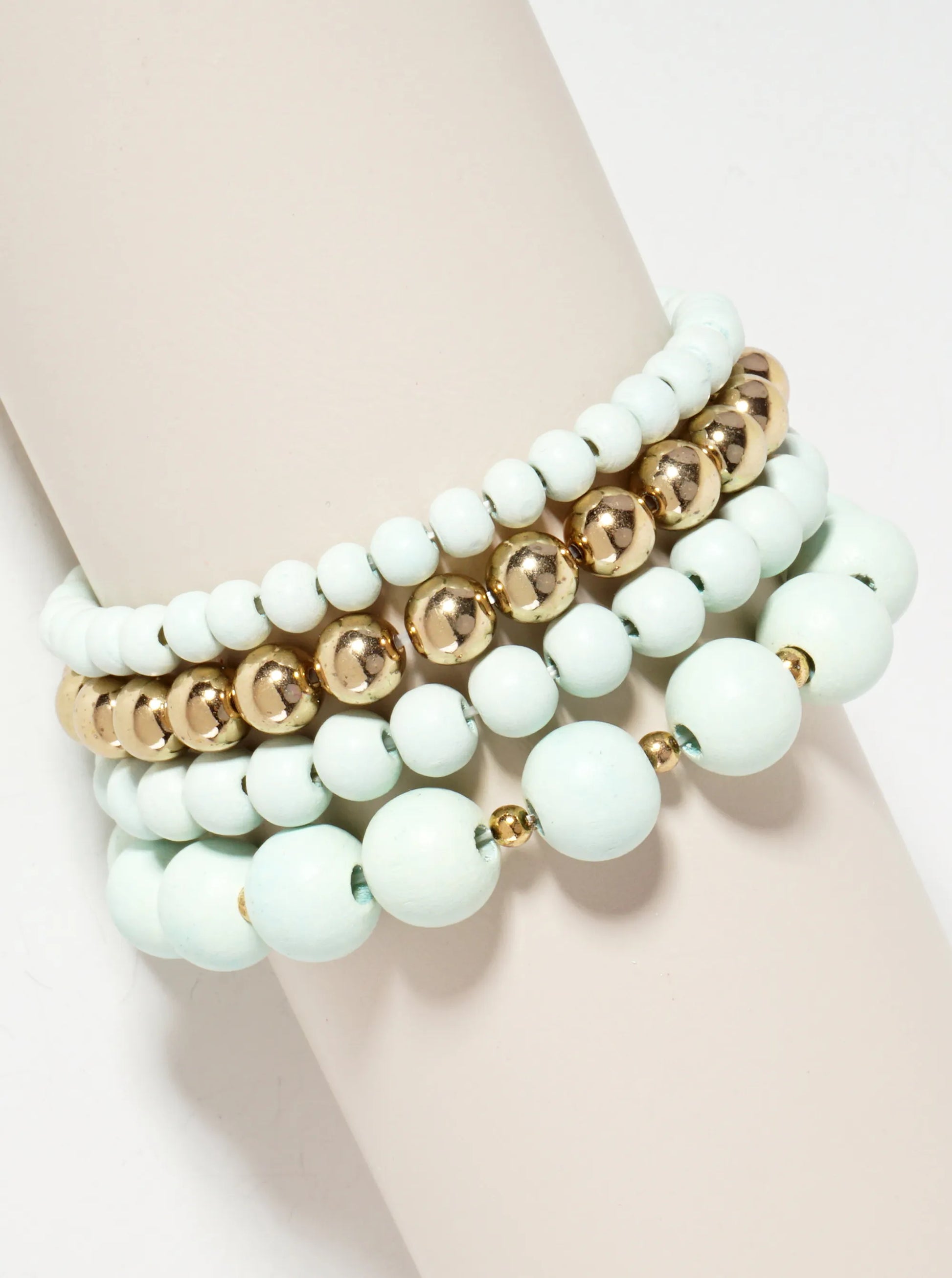 Set-of-4 6-12mm Wood And Metallic-Beads Stackable Stretch Bracelet
