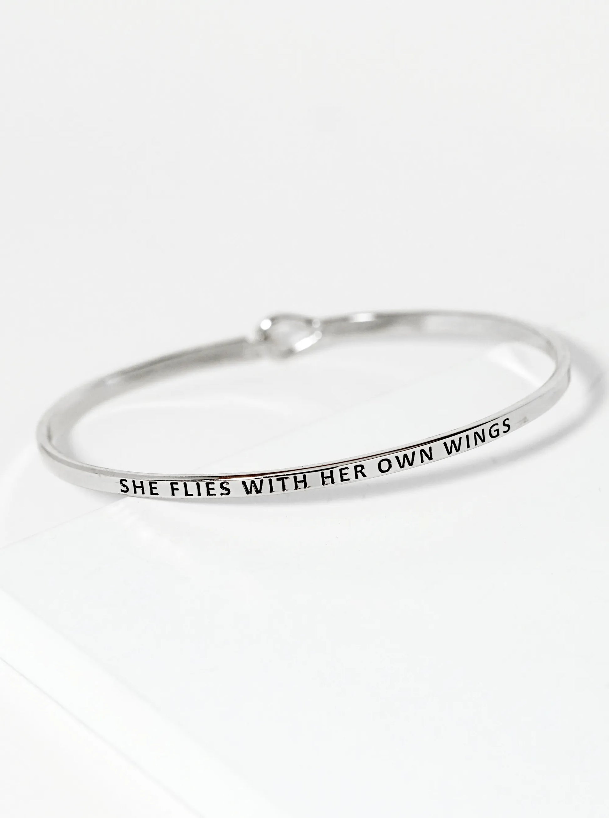 She Flies With Her Own Wings Engraved Inspirational Bangle Bracelet