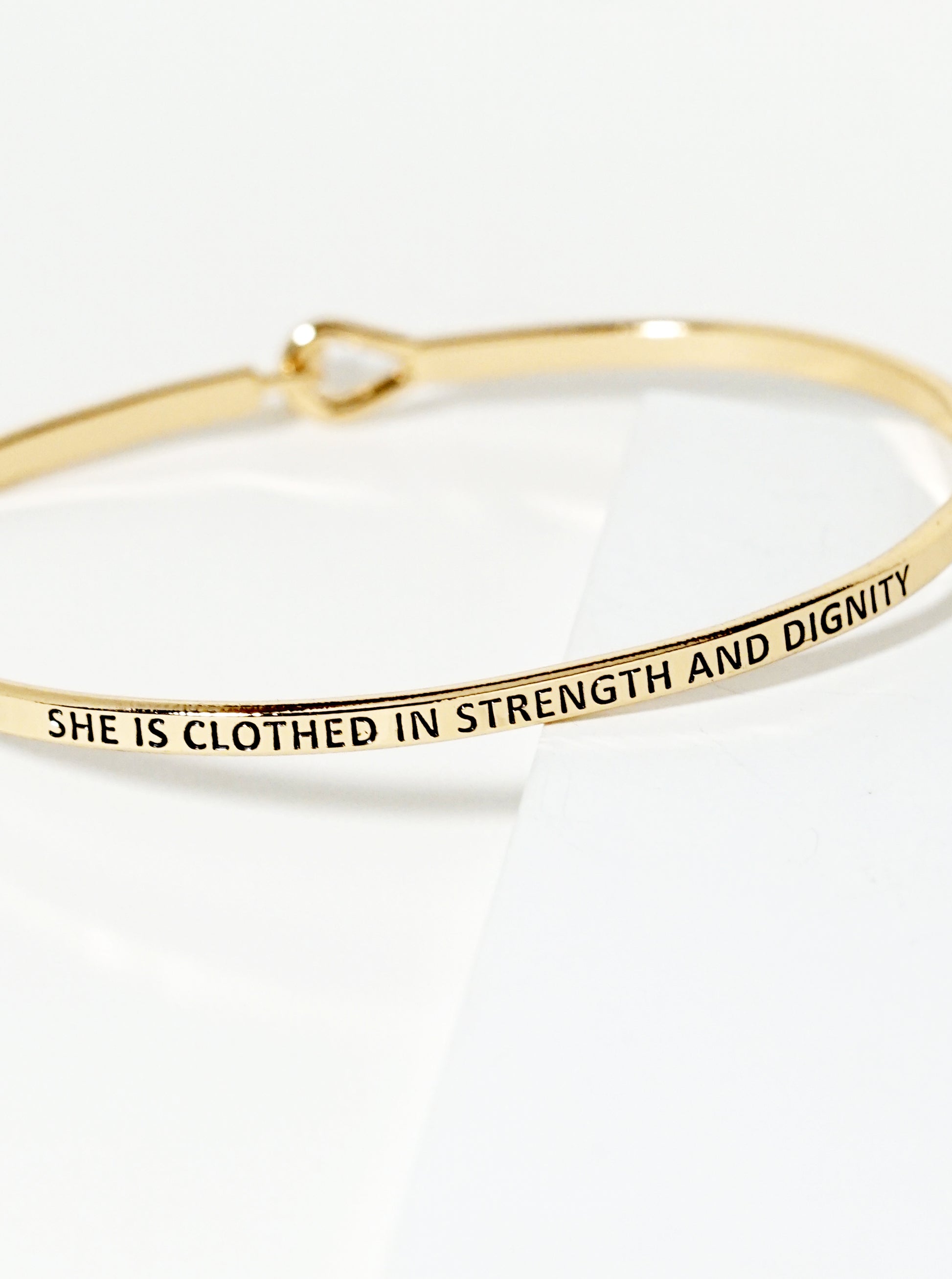 She-Is-Clothed-In-Strength-And-Dignity Engraved Inspirational Bangle Bracelet