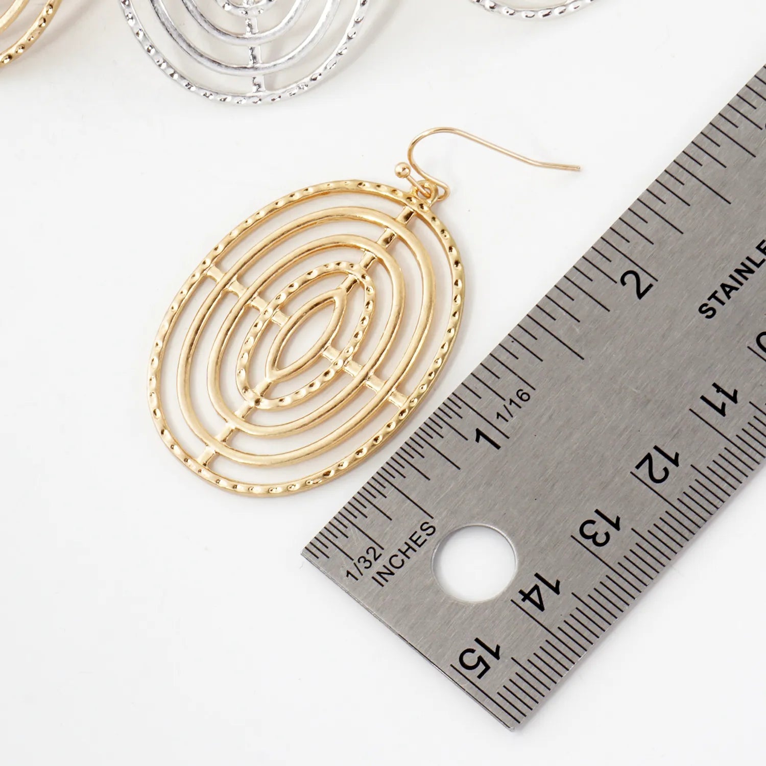 Shooting-Target Inspired Textured Filigree Oval Earrings