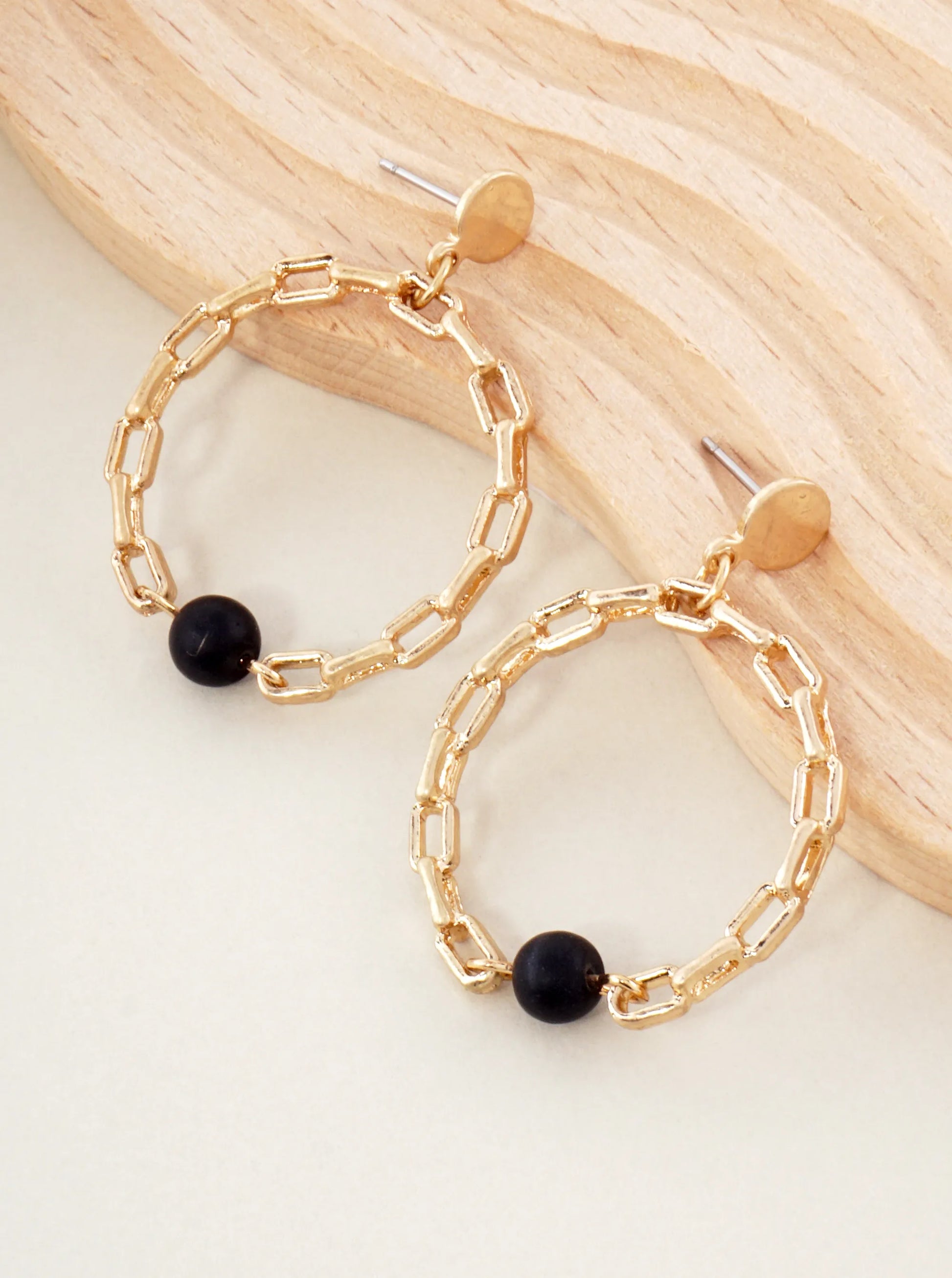 Simulated Chain Circle Drop With Semiprecious Stone Dangle Earrings