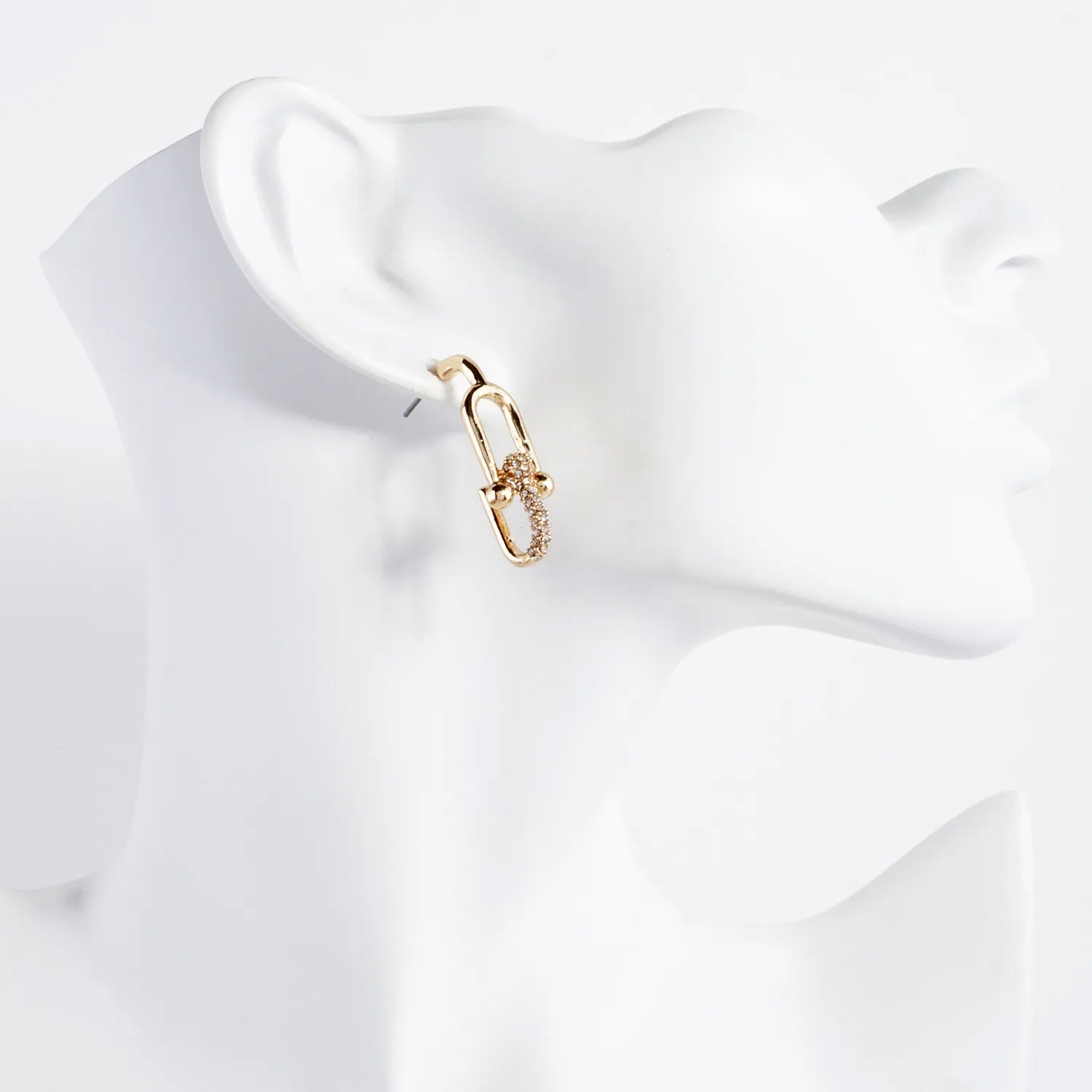 Simulated Horseshoe Chain Drop Earrings With Crystal