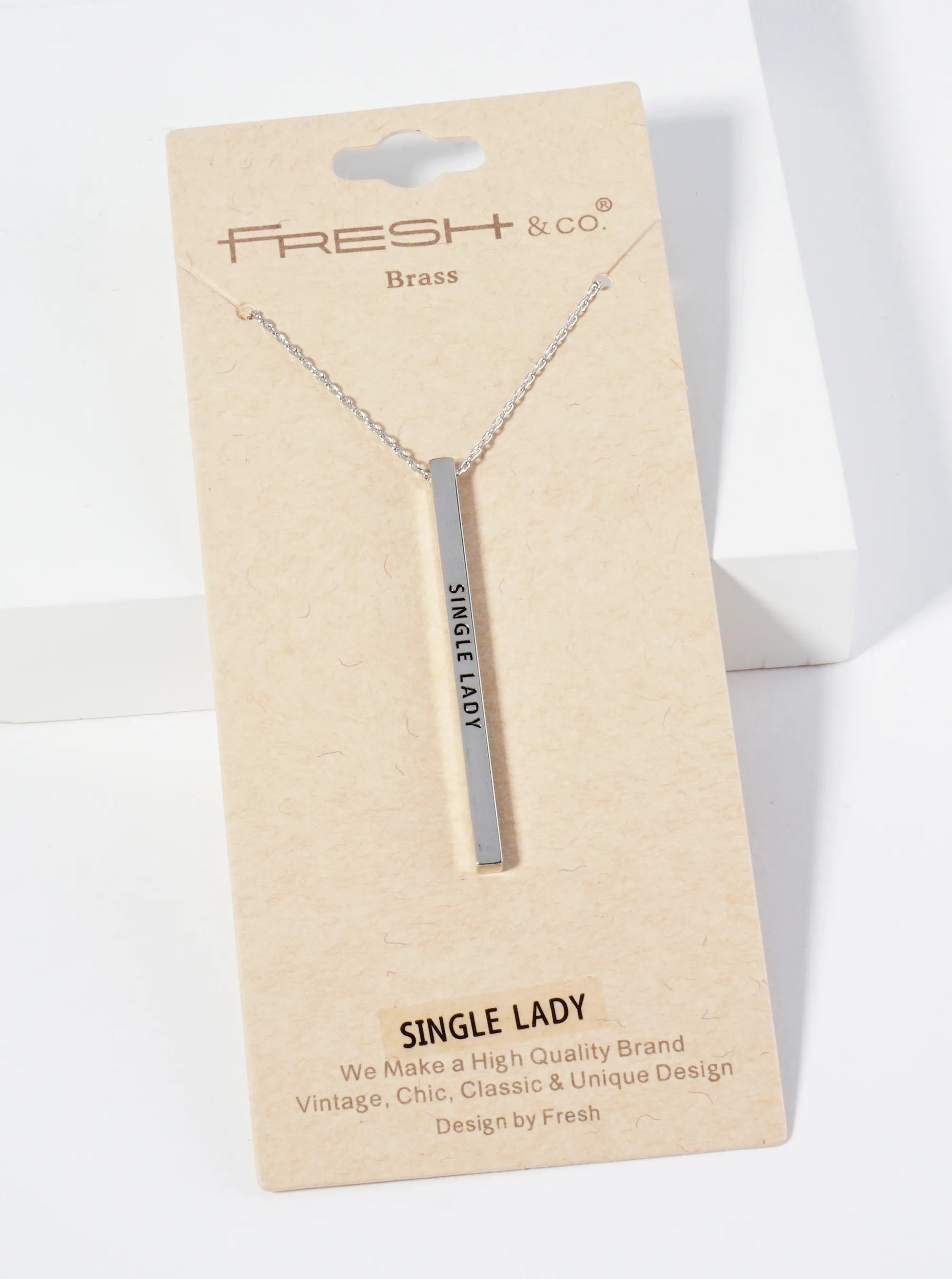 Single Lady Engraved Vertical Bar Pendant Inspirational Necklace
