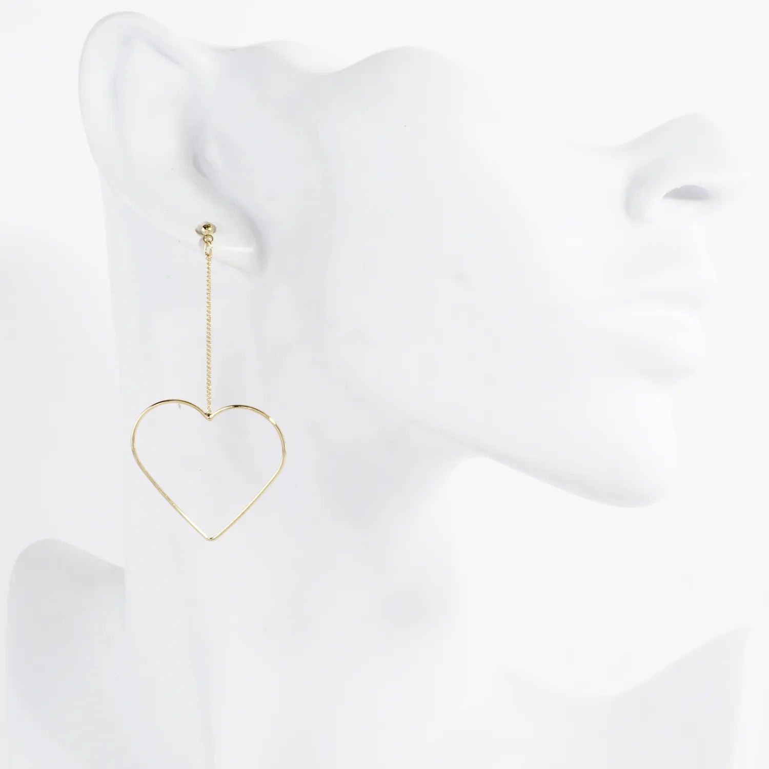 Introducing The SHA3240 Dangle Earrings—a Must-have Addition To Your Store's Jewelry Collection. Crafted From Polished Brass, These Stunning Heart-shaped Earrings Beautifully Capture The Essence Of Love With An Abstract Sculptural Flair. Measuring 2.5 Inches, Their Elegant Linear Drop Style Offers A Modern Twist On Classic Romantic Themes, Making Them Ideal For Valentine’s Day Promotions. The Post Back Closure Ensures A Secure Fit For Comfortable Wear, Appealing To A Wide Audience. Perfect For Both Special Occasions And Everyday Elegance, These Earrings Are Poised To Drive Sales With Their Versatile Appeal.