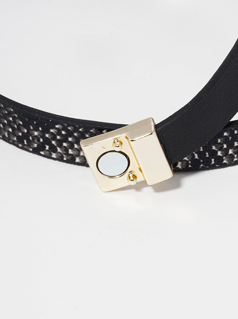Snake Skin Animal Print Leatherette Wrap Around Braceclet With Magnetic Closure