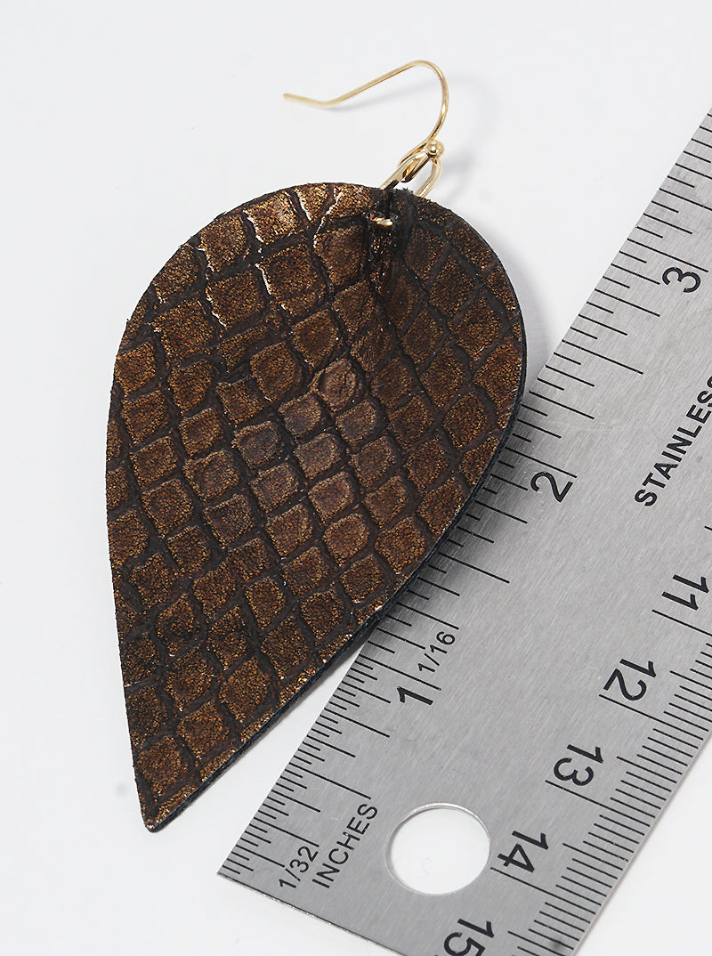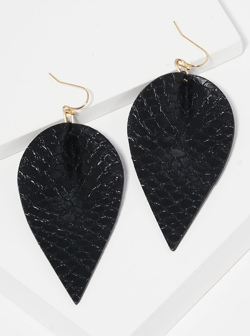 Snake Skin Printed Leaf Shaped Leatherette Fish Hook Dangle Drop Earrings
