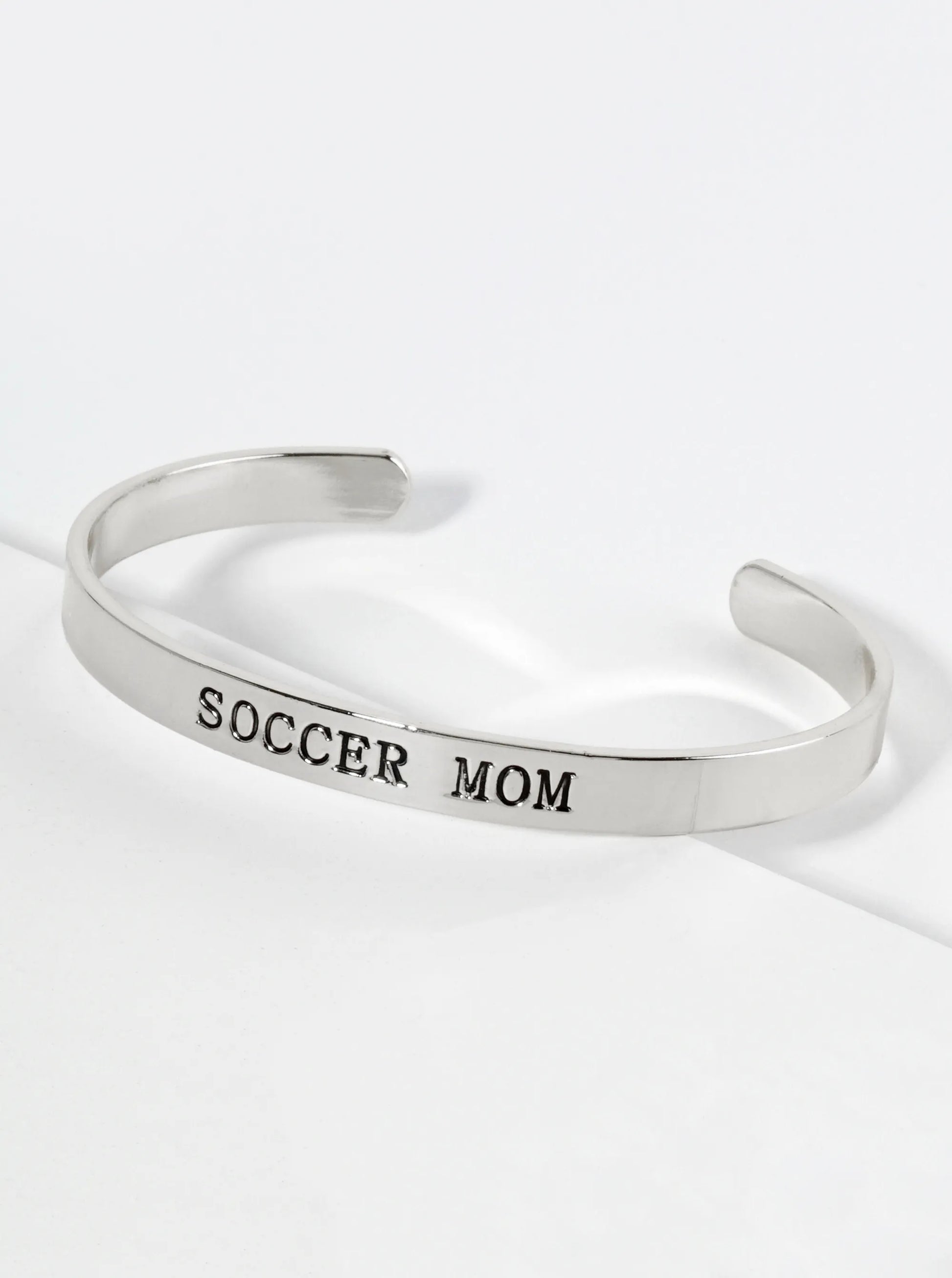 Soccer Mom Engraved 18K Gold Dipped Open Cuff Bangle Bracelet